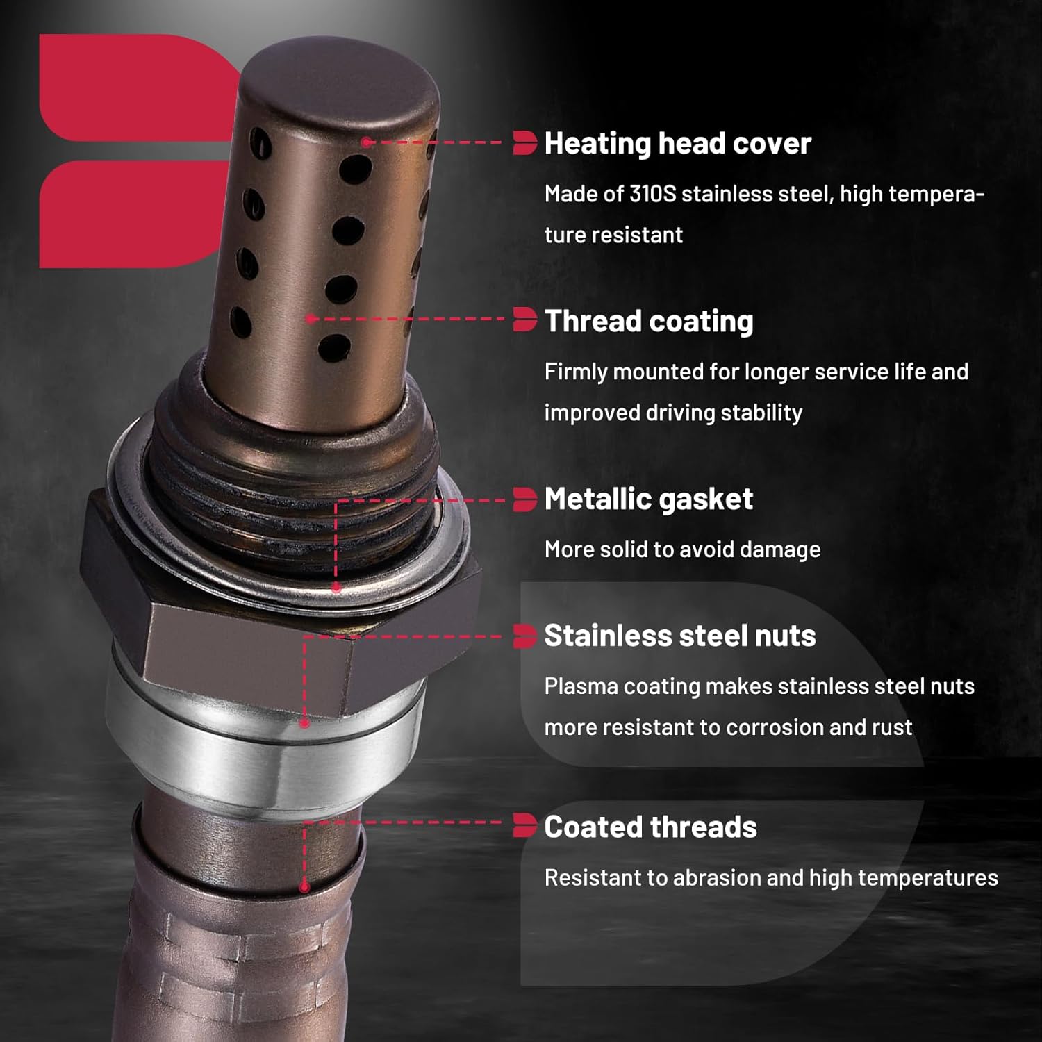 - Material de Alta Qualidade: O sensor é fabricado em aço inoxidável e outros materiais resistentes a altas temperaturas. Passou por rigorosos testes durante o processo de fabricação, garantindo estabilidade, resposta rápida e uma vida útil prolongada. Após a instalação, seu veículo terá desempenho semelhante ao de um carro novo, com arranque rápido e aceleração eficiente.