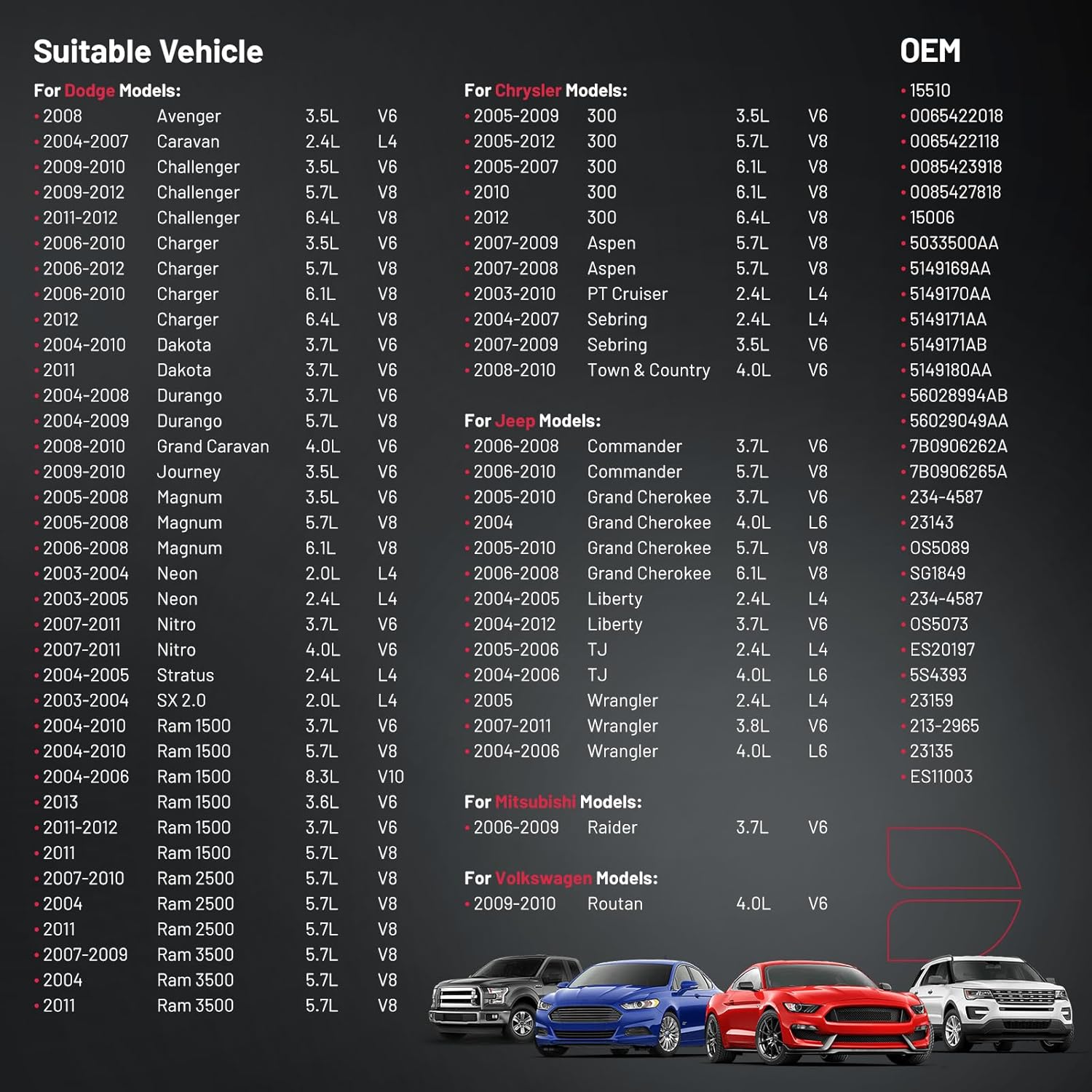 – Modelos Aplicáveis: Compatível com Chrysler 200 (2012-2016), Dodge Dakota (2005-2011), Jeep Cherokee (2014-2022), Mercedes-Benz C350 (2012-2014), Mitsubishi Raider (2006-2007), Ram 1500 (2013-2018) e VW Routan (2009-2010). Consulte as imagens e a página de detalhes para mais modelos suportados.