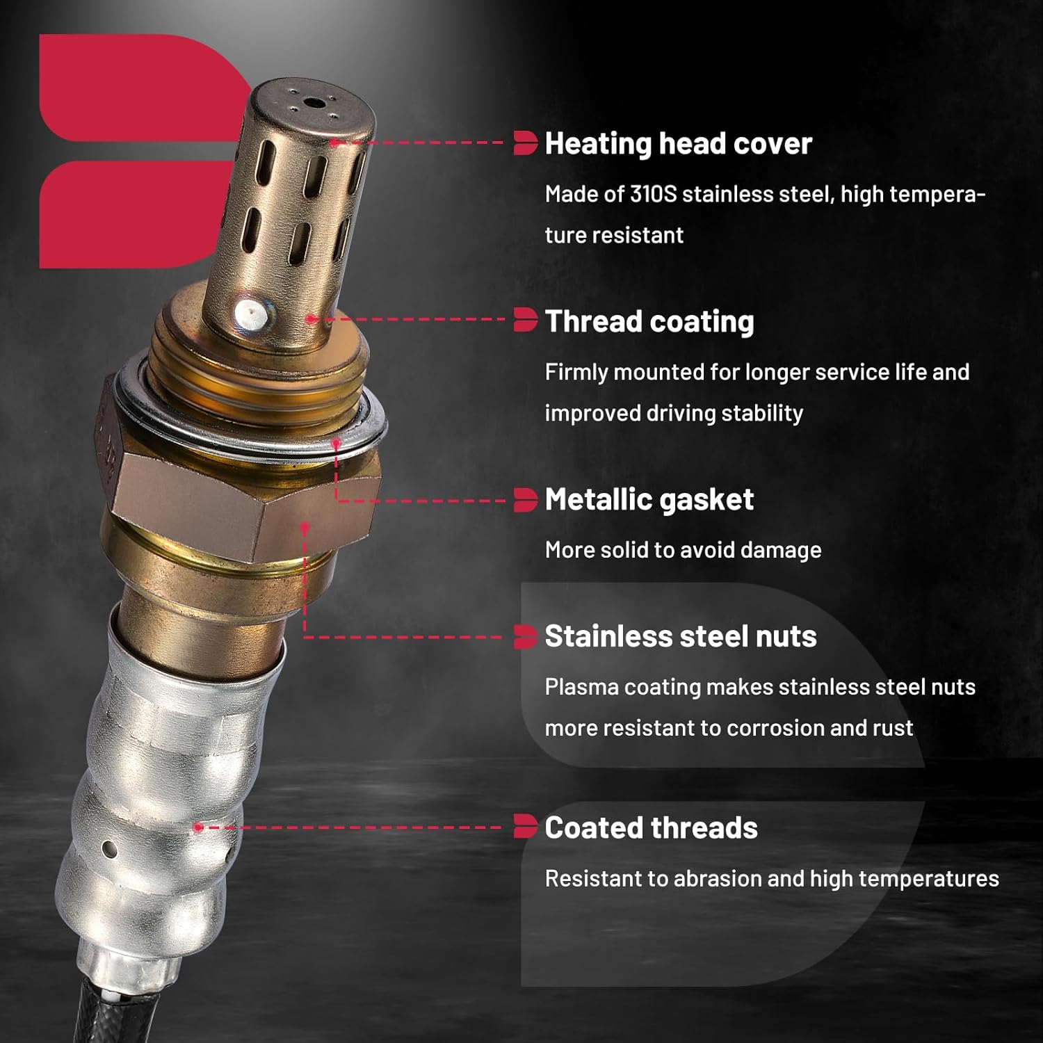 – Instruções de Instalação: O sensor é feito de acordo com as especificações OE. É crucial ter cuidado ao desmontar para não danificar o tubo de escape e as partes roscadas do sensor. Utilize ferramentas profissionais para a desmontagem. Lembre-se de que a temperatura do tubo de escape e do sensor é muito alta após o funcionamento do veículo; aguarde o resfriamento completo antes de prosseguir.