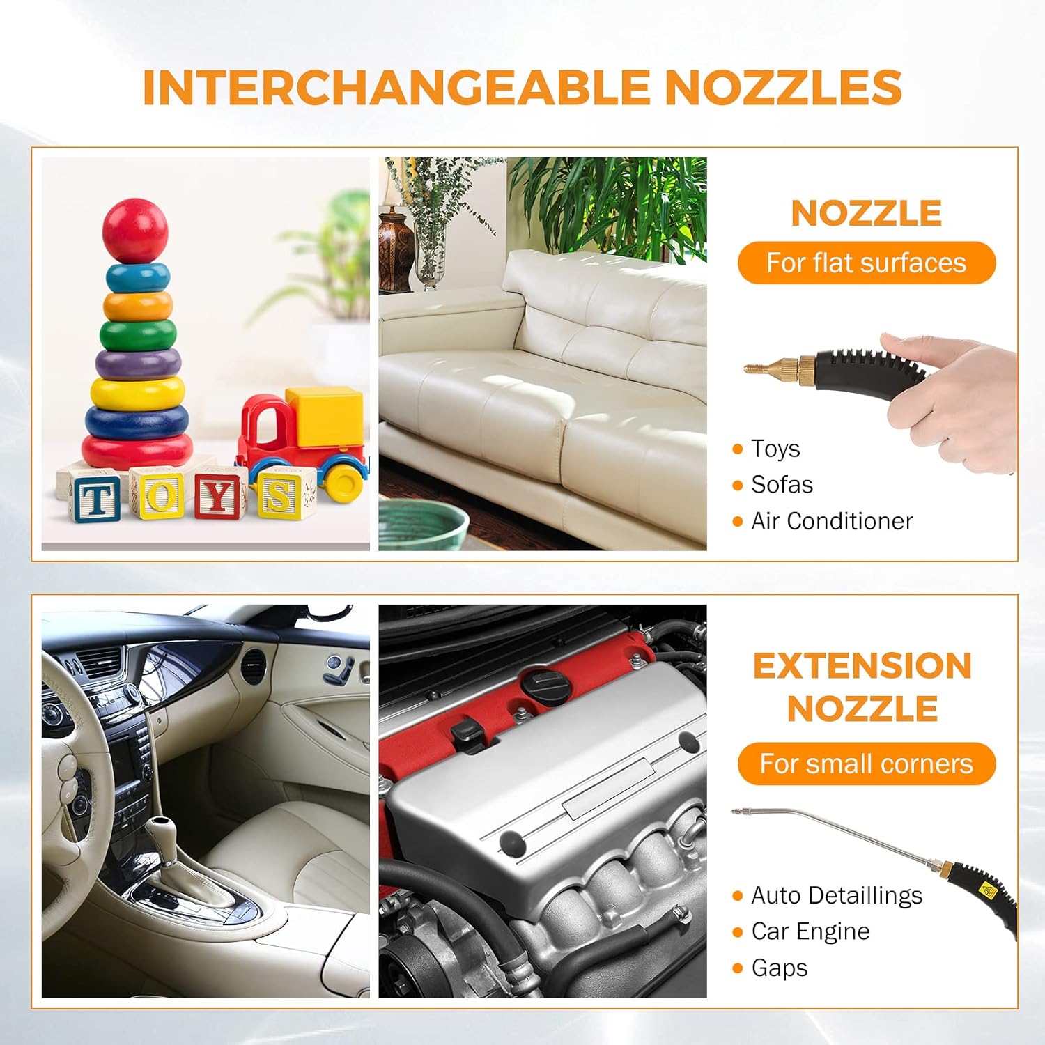 4. Limpeza: Utilize os acessórios fornecidos para diferentes tipos de superfícies, como escovas para estofados e bicos direcionais para áreas estreitas.