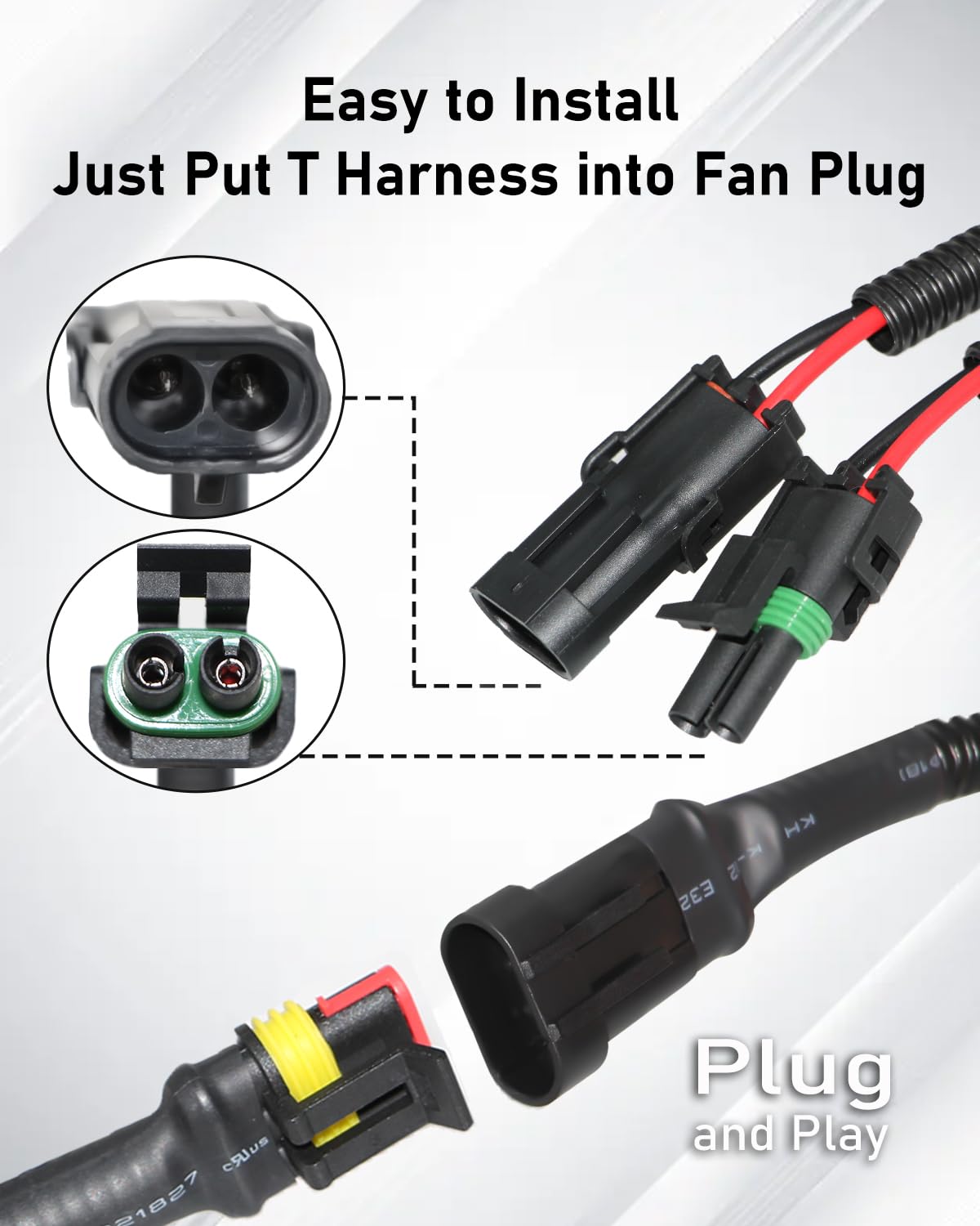 – Fácil Instalação: O kit é projetado para uma instalação simples e rápida, sem a necessidade de cortar fiações de fábrica. Basta conectar o T-Harness nas tomadas do ventilador do radiador e conectar o fio de alimentação ao 12V+.