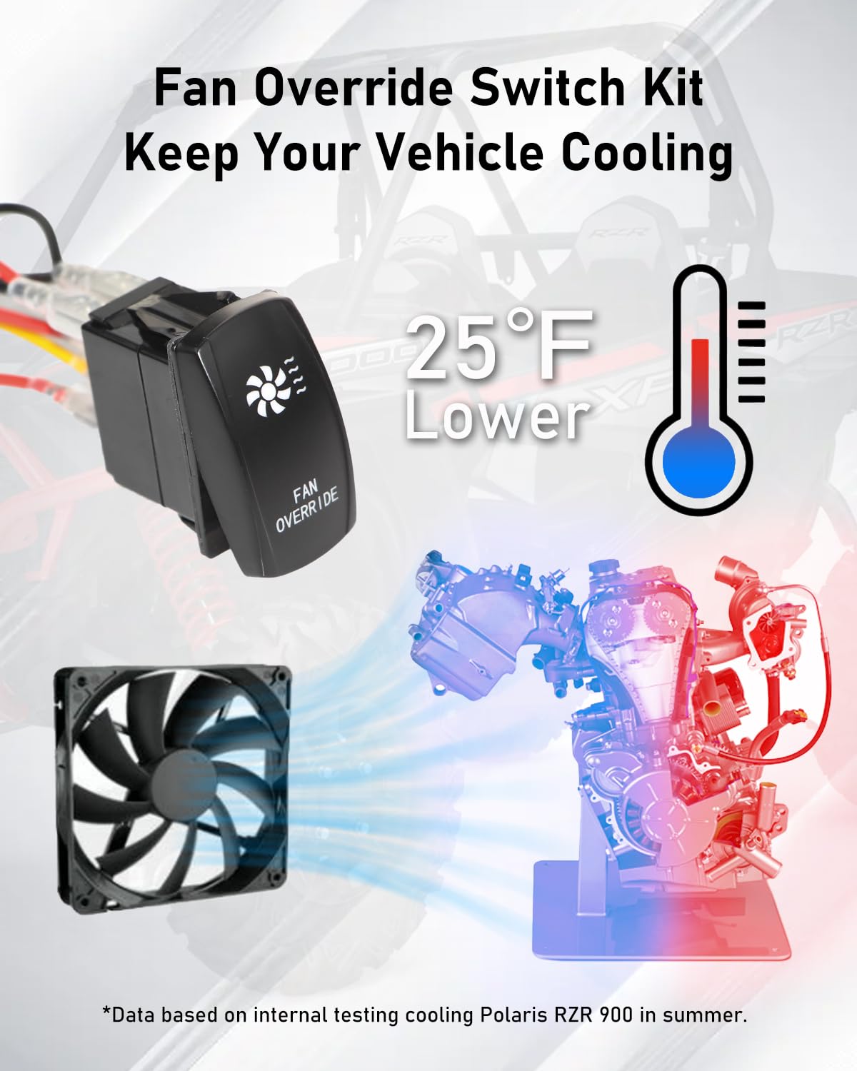 My ranger seems to run hot and it’s almost new 25 hours it would hit 205 rock climbing then before the fan could come on blast up to 207 I replaced the fan temp sensor bleed the air got none no change flip the switch on under a hard pull and it settled at 187 to 195 pluse you fan works normally with the switch off so I would say it’s fantastic.