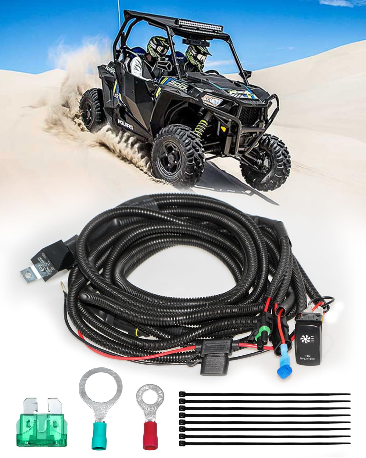 Kit de Interruptor de Sobrecarga de Ventilador Belinous ATV UTV com Relé e Interruptor Rocker LED – Compatível com Polaris RZR Ranger e Can Am X3 Maverick Defender Commander