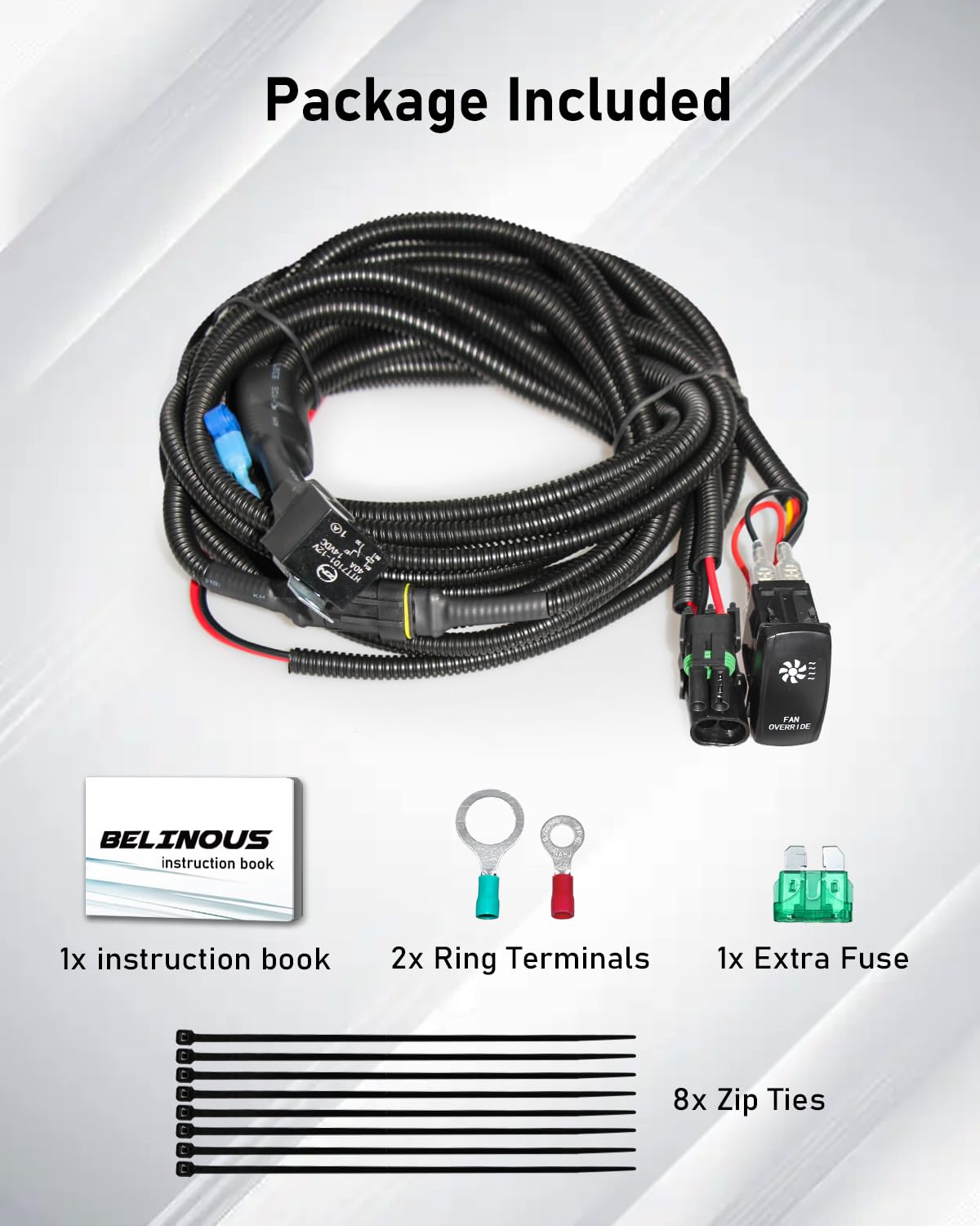 – O que Você Recebe?: O kit inclui 1 interruptor de sobrecarga do ventilador, 1 fusível extra, 8 abraçadeiras, 2 terminais de anel, 1 manual de instruções, 18 meses de garantia sem problemas e atendimento ao cliente online 24 horas.