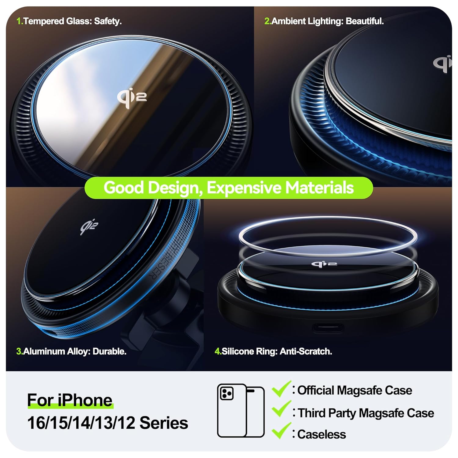 Qi2 WPC Official Validation, Strong Magnetic 4.16 lbf (1.89 kg), 15W-Ultra Faster Charging, Enhanced Safety