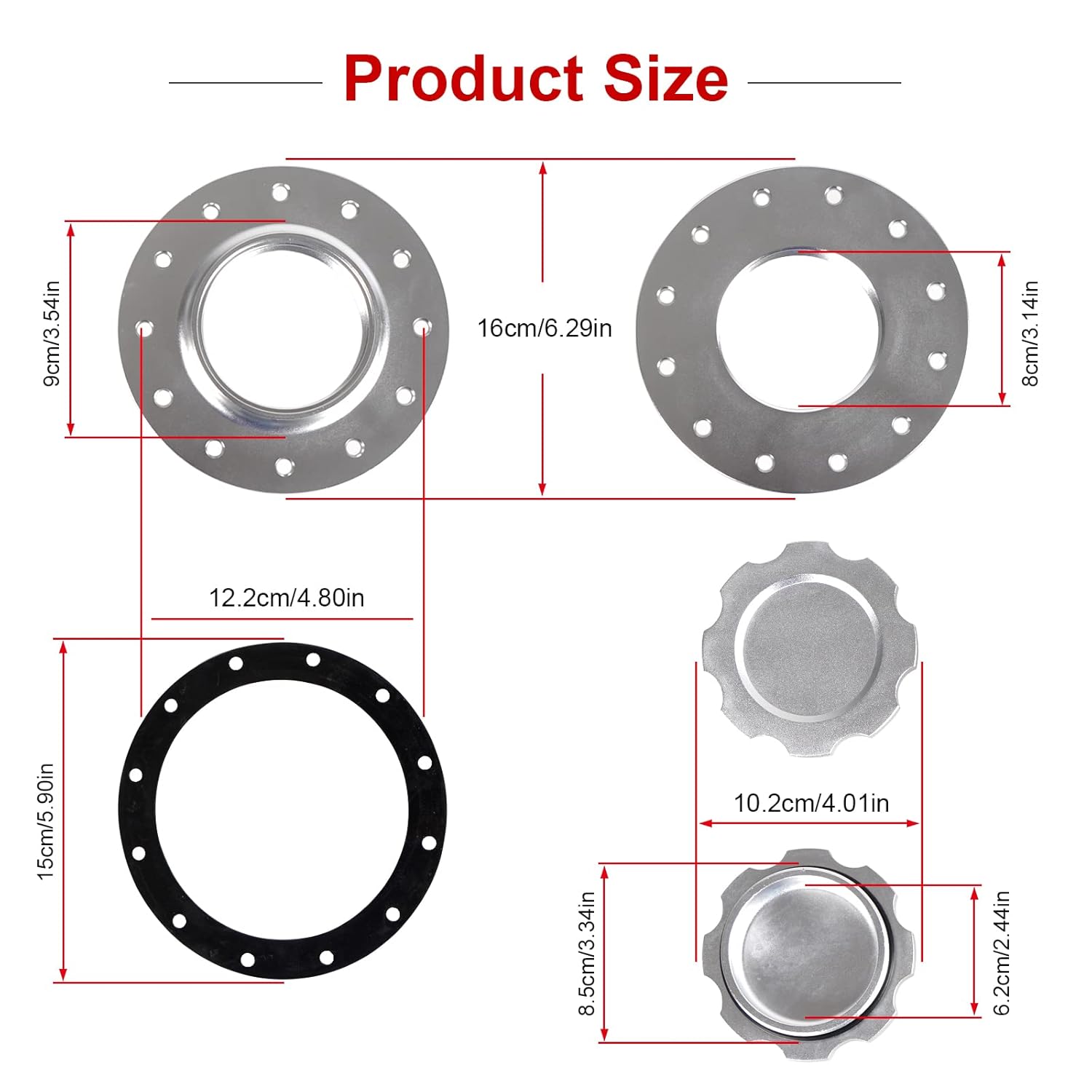 The fuel cell cap is nice. The mounting flange is not a standard 12 bolt pattern. I had to enlarge all of the bolt holes to get it to line up on the fuel cell pattern.