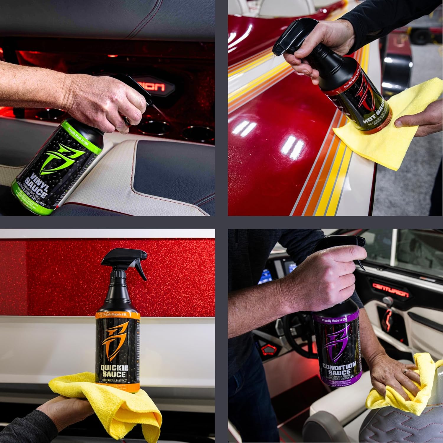 – Vinyl Sauce: Um limpador premium para vinil, couro e plásticos, o Vinyl Sauce é seguro e eficaz na remoção de sujeira difícil das superfícies internas. Sua fórmula avançada não apenas limpa, mas também revitaliza os materiais, deixando-os com aparência nova.