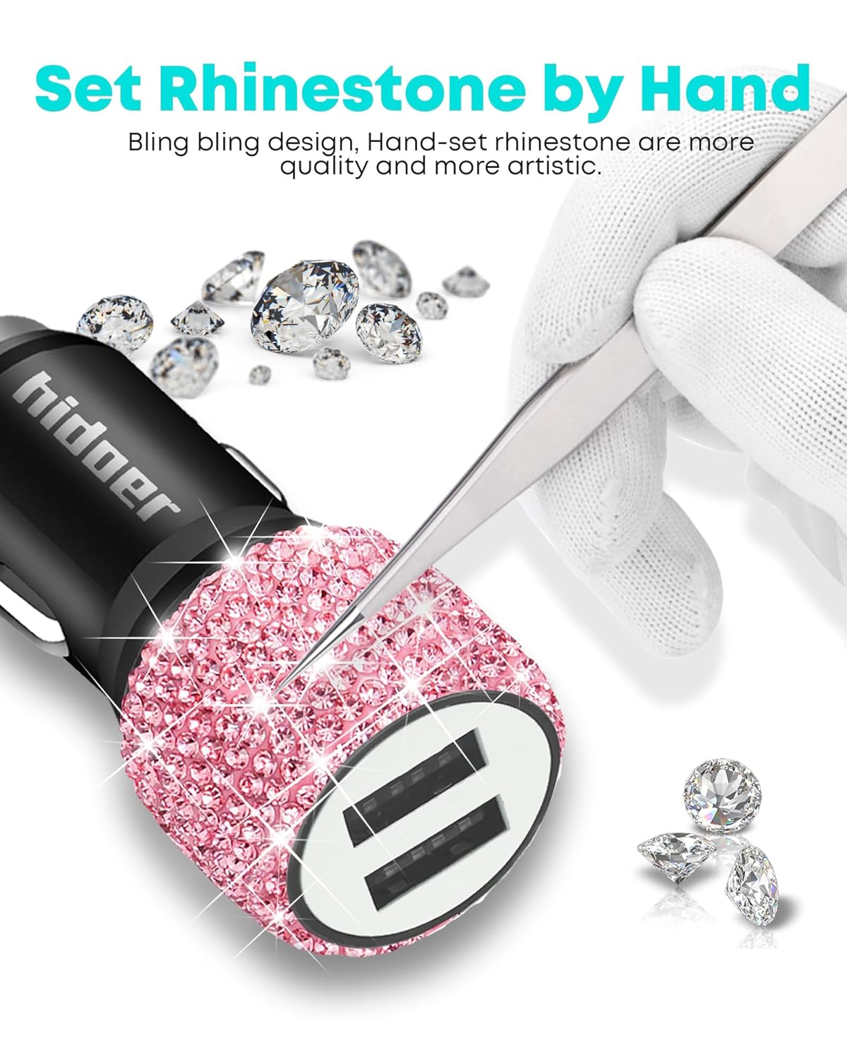 Apresentamos o Bling USB Car Charger 5V 2.4A Pink Crystal Decor Dual Port Fast Adapter, um carregador de carro que combina estilo e funcionalidade. Com um design deslumbrante adornado com cristais, este carregador não é apenas uma ferramenta prática, mas também um acessório de moda que transforma o interior do seu veículo. Ideal para homens e mulheres que apreciam um toque de glamour, o Bling USB Car Charger é a escolha perfeita para quem deseja carregar seus dispositivos com elegância.