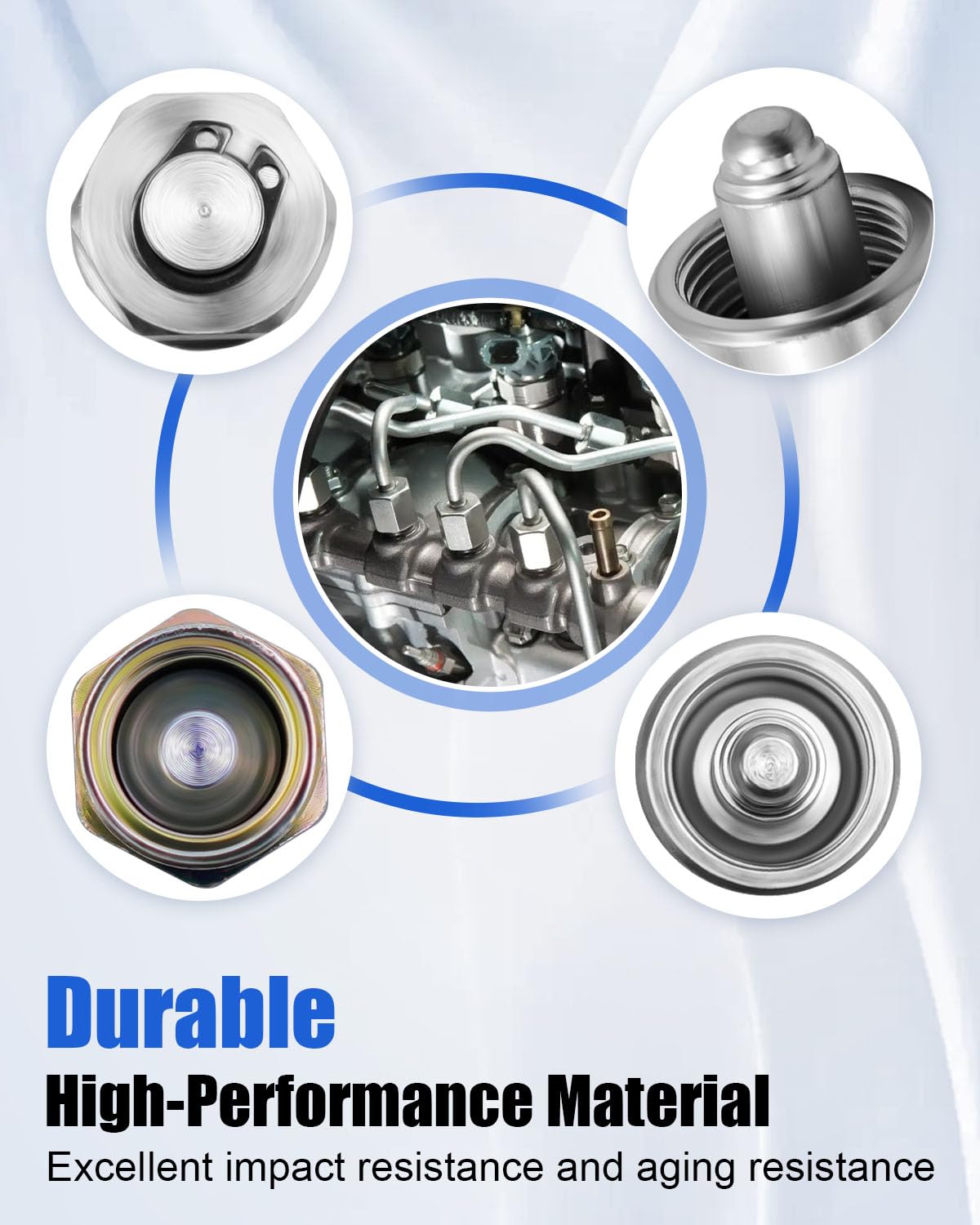 O conjunto de tampas de injetores de combustível Block-Off Rail para motores a diesel é a solução ideal para quem busca eficiência e segurança no teste de sistemas de combustível. Com compatibilidade multi-tamanho, este conjunto inclui interfaces de 12mm, 14mm, 16mm, 18mm e 20mm, permitindo que se adapte a uma ampla gama de diâmetros de linhas de combustível. Isso torna o produto uma solução versátil para diversos veículos, incluindo modelos da Cummins (2003-2022), Duramax (2001-2022) e Ford (2008-2022).