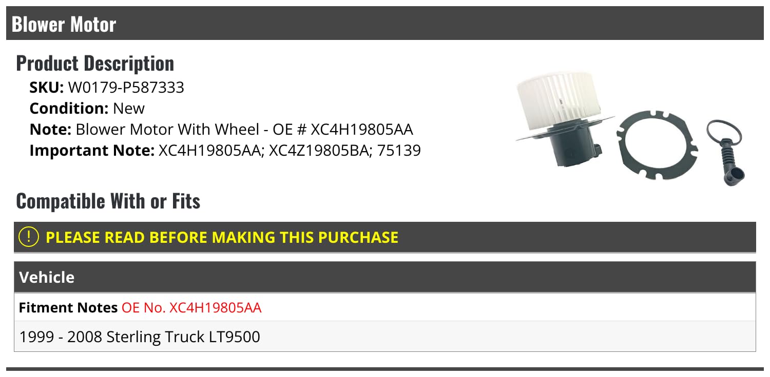 O Blower Motor – Compatível com o Sterling Truck LT9500 (1999-2008) é um componente essencial para garantir o funcionamento eficiente do sistema de climatização do seu caminhão. Este motor de ventilação, identificado pelo número de peça OE XC4H19805AA, é projetado para oferecer desempenho superior e durabilidade, atendendo às exigências rigorosas do setor de transporte. Com a referência XC4H19805AA, além das variações XC4Z19805BA e 75139, este motor é a escolha ideal para quem busca qualidade e confiabilidade.