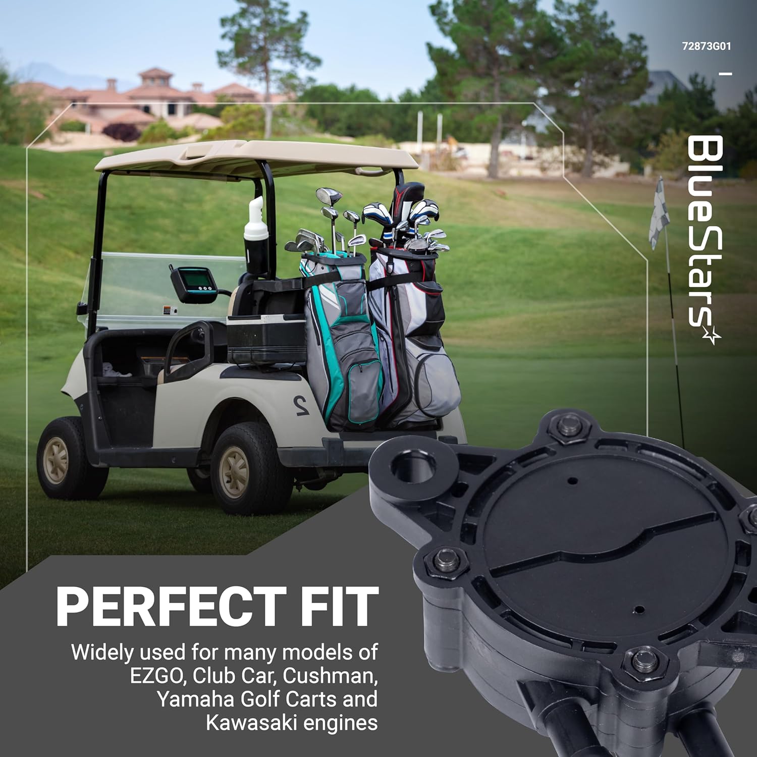Resposta: A bomba BlueStars 72873G01 é compatível com diversos modelos, incluindo EZGO, Club Car e Yamaha. Consulte a lista de compatibilidade para verificar se seu veículo está incluído.