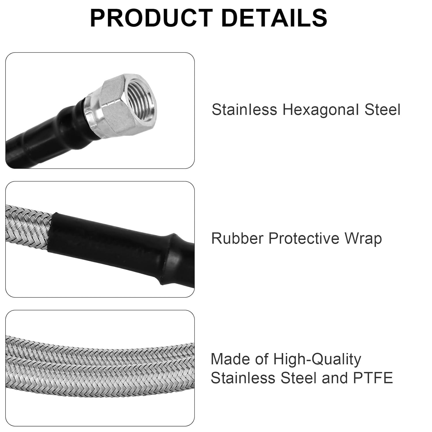 - DURABILIDADE: As linhas de resfriamento de transmissão 6AN são fabricadas em PTFE (Teflon) de alta resistência, que resiste a altas e baixas temperaturas e é anti-corrosão. O aço inoxidável trançado com precisão na parte externa da mangueira aumenta significativamente sua resistência.