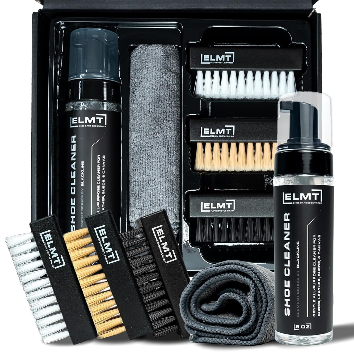 O Bundle of Blackline ELMT Shoe Cleaner Kit + Blackline Drying Towel é a solução definitiva para quem busca manter seus calçados sempre limpos e bem cuidados. Este kit combina a eficácia do limpador de calçados Blackline ELMT com a praticidade da toalha de secagem Blackline, proporcionando uma experiência completa de limpeza e manutenção. O limpador é formulado com ingredientes de alta qualidade que removem sujeira, manchas e odores, sem danificar os materiais dos calçados. A toalha de secagem, por sua vez, é feita de microfibra premium, garantindo absorção máxima e secagem rápida.