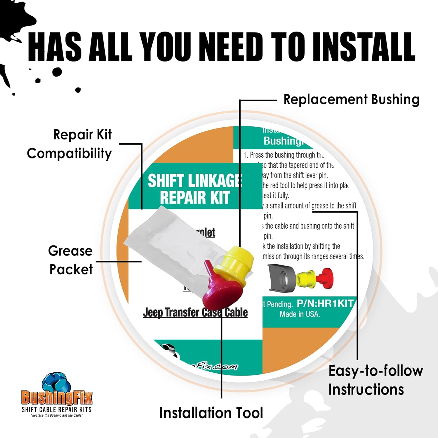 Kit de Substituição Tudo-em-Um: O HR1KIT inclui um bushing moldado sob medida, um pacote de graxa e uma ferramenta de instalação. Com este kit, você pode reparar o cabo da caixa de transferência sem precisar substituir todo o cabo, economizando tempo e dinheiro.