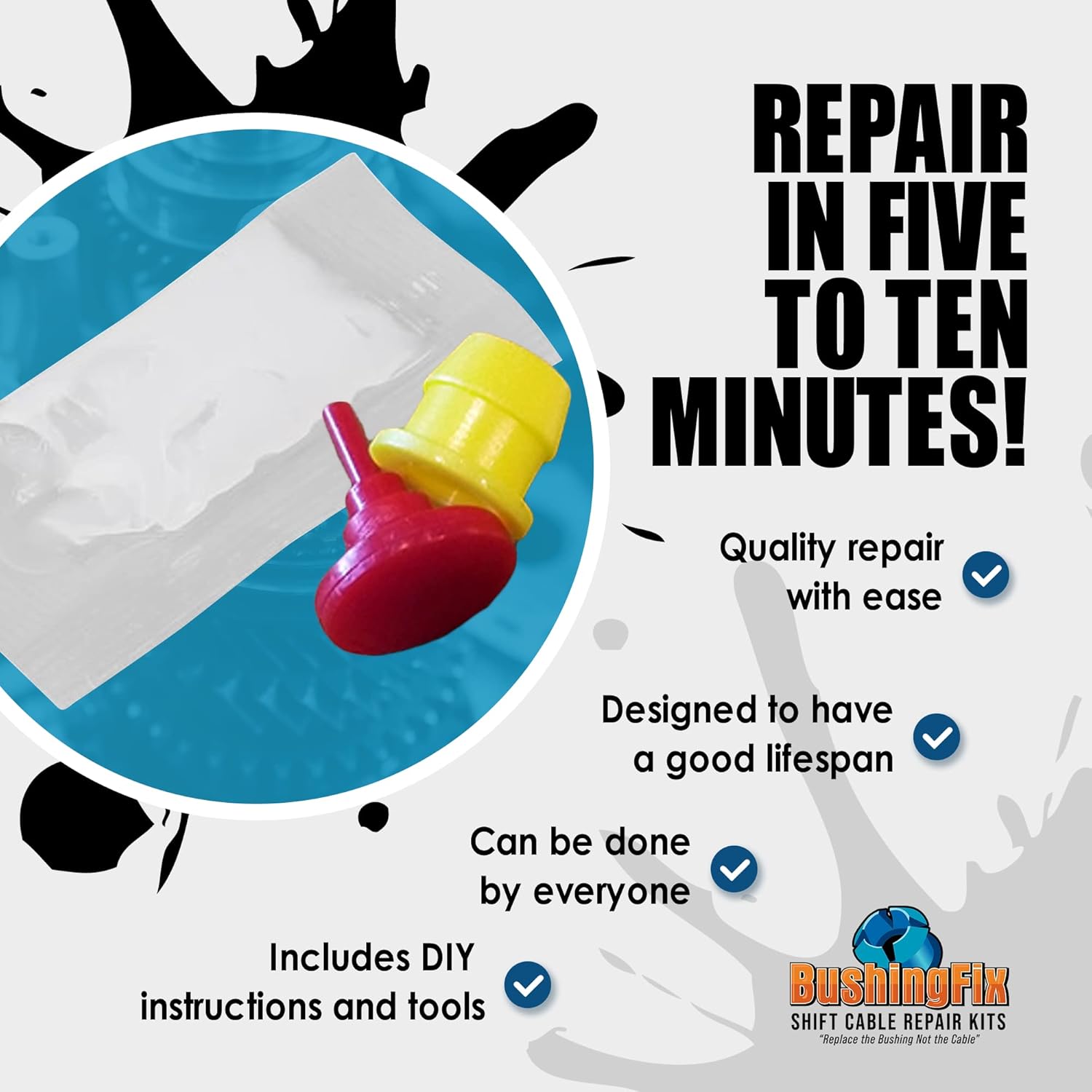 Qualidade em que Você Pode Confiar: O kit de substituição do bushing do cabo de câmbio é fabricado com materiais de alta qualidade, garantindo durabilidade e resistência. Este produto é uma excelente alternativa para o cabo de câmbio da caixa de transferência que está quebrado ou desgastado. O bushing do cabo de câmbio foi desenvolvido pela BushingFix, que possui dois patentes (patente dos EUA #10,619,723 e #10,215,273) para suas inovações.