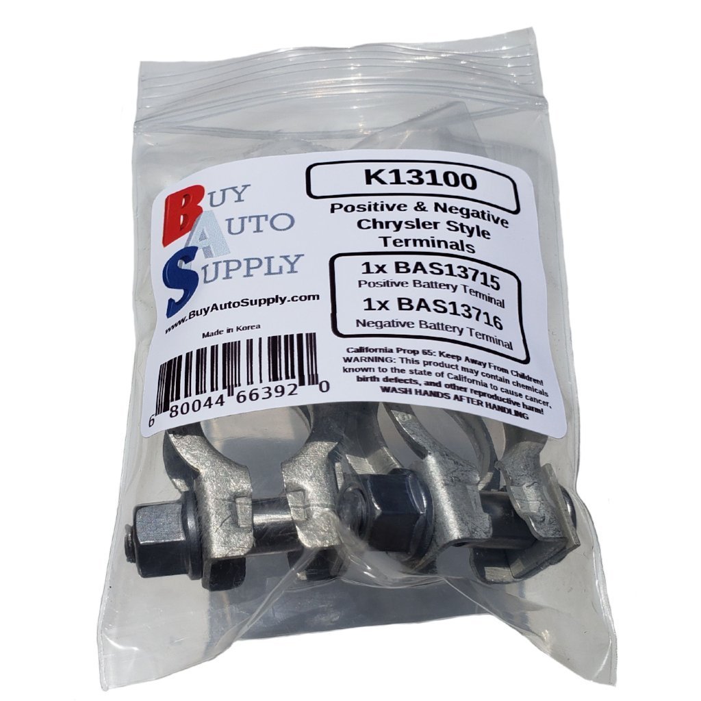 Perfect fit for our Town and Country Minivan. Chrysler designed the positive terminal cable connector screw to be smaller than the negative terminal cable connector screw. You cannot use the universal battery terminals from local auto parts stores due to this size difference. These amazon ones are just like the original parts from the factory. This is sold as a pair here. The dealer sells these separately. Keeps our family hauler moving. Have fun.