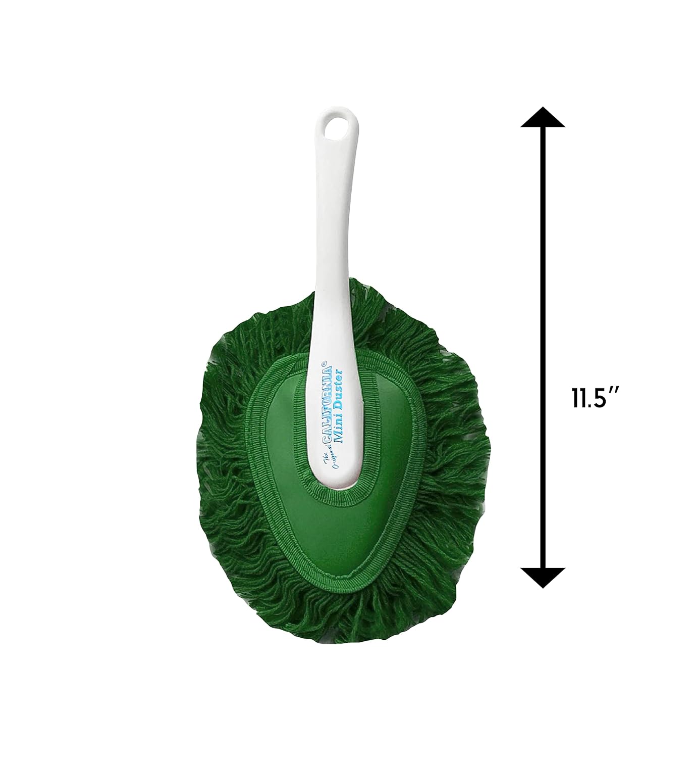 Having used a California Car Duster for a number of years, I decided to try a new version. This green duster is effective AND adorable! Due to its smaller size, it fits in spaces the regular car duster does not. It picks up dust and leaves a clean trail. Love it!