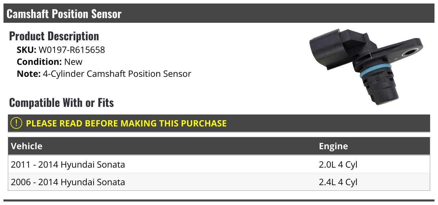 1 avaliação para Sensor de Posição do Comando de Válvulas – Compatível com Hyundai Sonata 2006-2014 2.0L 2.4L 4 Cilindros