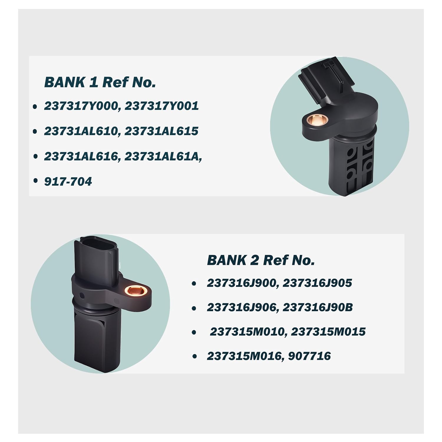 - Número da Peça OE – Sensor de Comando do Banco-1 – 237317Y000, 237317Y001, 23731AL610, 23731AL615, 23731AL616, 23731AL61A, 917-704. Sensor de Comando do Banco-2 – 237316J900, 237316J905, 237316J906, 237316J90B, 237315M010, 237315M015, 237315M016, 907-716.
