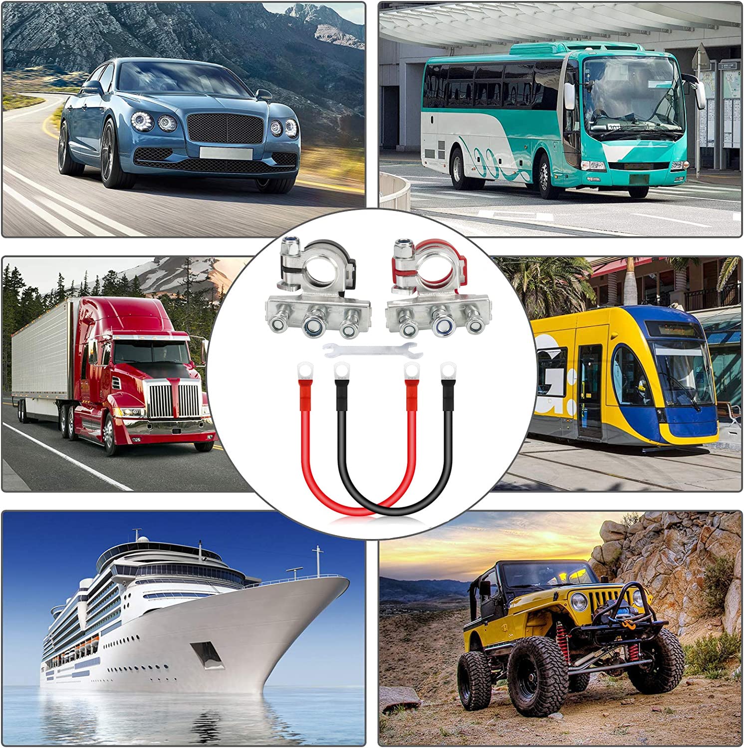 Os conectores de bateria para carro são essenciais para garantir a eficiência e a segurança do sistema elétrico do seu veículo. Este conjunto de conectores de bateria de alta qualidade é projetado para atender às necessidades de diversos tipos de veículos, incluindo carros, vans, caminhões e ônibus. Com um design robusto e funcional, os conectores são feitos de materiais de latão e aço de alta qualidade, que oferecem resistência à corrosão e excelente condutividade elétrica. Isso significa que você pode contar com uma redução significativa na distorção de tensão e na perda de transmissão, garantindo que seu veículo funcione de maneira otimizada.