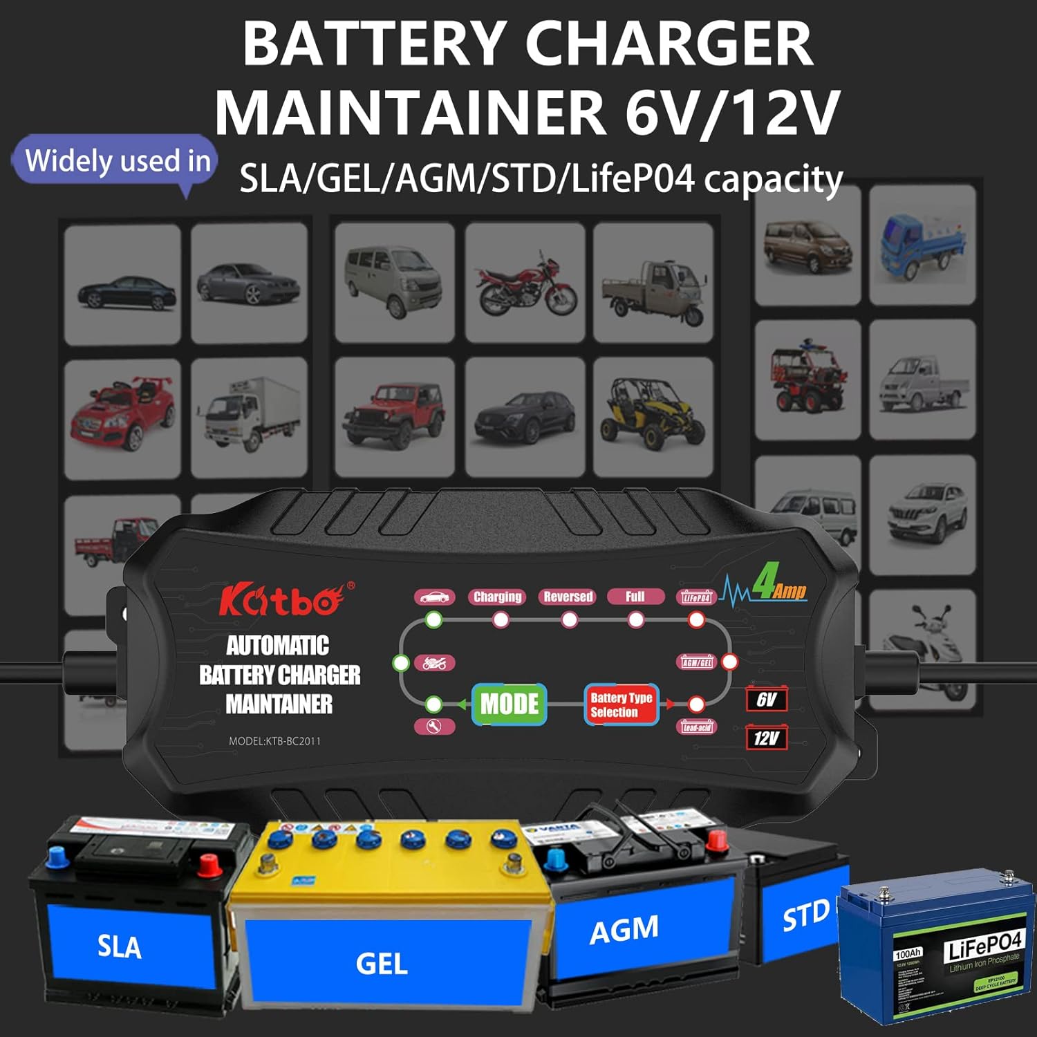 - Corrente de Carga de 2A e 4A: Este carregador rápido para automóveis oferece uma corrente de 2A e 4A, funcionando como um mantenedor de flutuação para um jump starter, além de ser um carregador e mantenedor de bateria 12V que estende a vida útil da bateria.