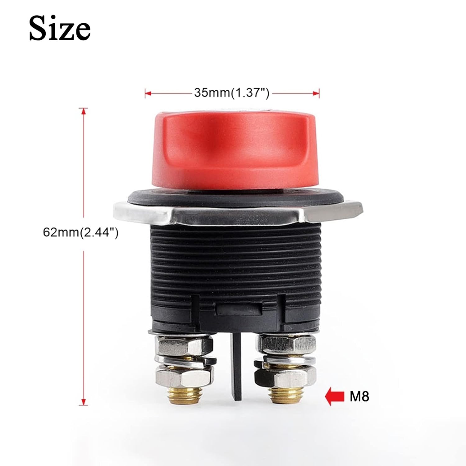Spend an extra few bucks and get a high quality switch like the Fastronix 300A 1/2″ Severe Duty Battery Disconnect Switch with Face Plate. This cheap item was installed in our camper and was first used on a 13-day camping trip from 14-28 Sep 2023. The switch failed during the first week of use and could have injured me as a result, as I was troubleshooting why devices were receiving power with the master switch in the off position. The switch is supposed to KILL POWER from the battery bank. After returning home, I tested the switch and it correctly passes full voltage in the on position. It ranges from 6V to 13V passing through the switch when in the OFF position, which is a DANGEROUS condition for an RV battery bank. Have sent a message to the manufacturer and do not expect a response. Other issues with this cheap switch are the ridiculously thin backing nut (covered in other reviews), switch rotates easily after installed, the hole size had to be filed out to get the switch to fit (is some odd I guess foreign hole saw bit size), and did I mention, it failed so quickly.