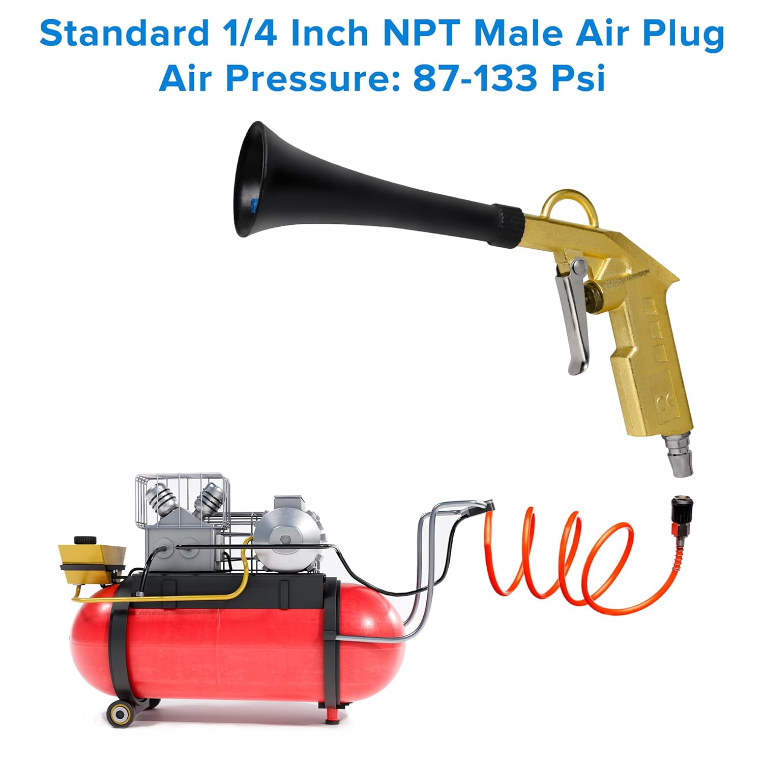 A operação da pistola de ar é simples e intuitiva, equipada com um conector padrão de 1/4″ NPT, compatível com a maioria dos compressores de ar. Para um desempenho ideal, recomenda-se uma pressão de ar entre 87 e 133 psi, garantindo que a limpeza seja feita de forma eficaz e sem esforço. A versatilidade da pistola é ampliada pelo conector rotativo de 361°, que permite que a mangueira de ar gire livremente, facilitando o acesso a áreas de difícil alcance.