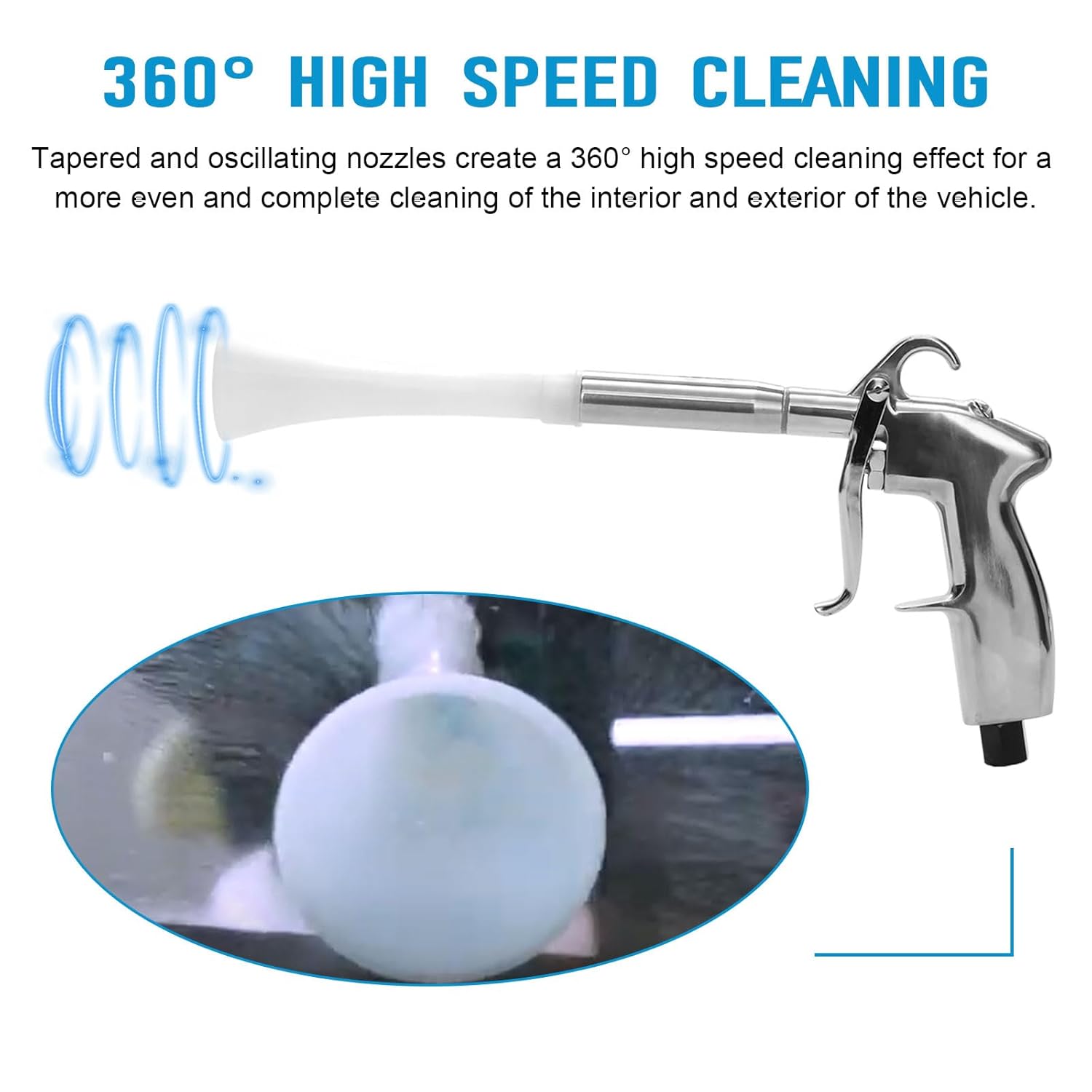 Fabricado em plástico branco CT-100, o cone possui uma construção robusta e suave, garantindo uma longa vida útil. Os bicos cônicos e os bicos oscilantes criam um efeito de limpeza em alta velocidade de 360°, capaz de limpar tanto superfícies duras quanto macias, liberando a sujeira de maneira eficaz. A instalação é simples, pois as peças de reposição são roscadas, permitindo uma troca rápida e fácil sem a necessidade de ferramentas adicionais. Antes da compra, é importante confirmar a marca e o modelo da sua pistola de sopro.