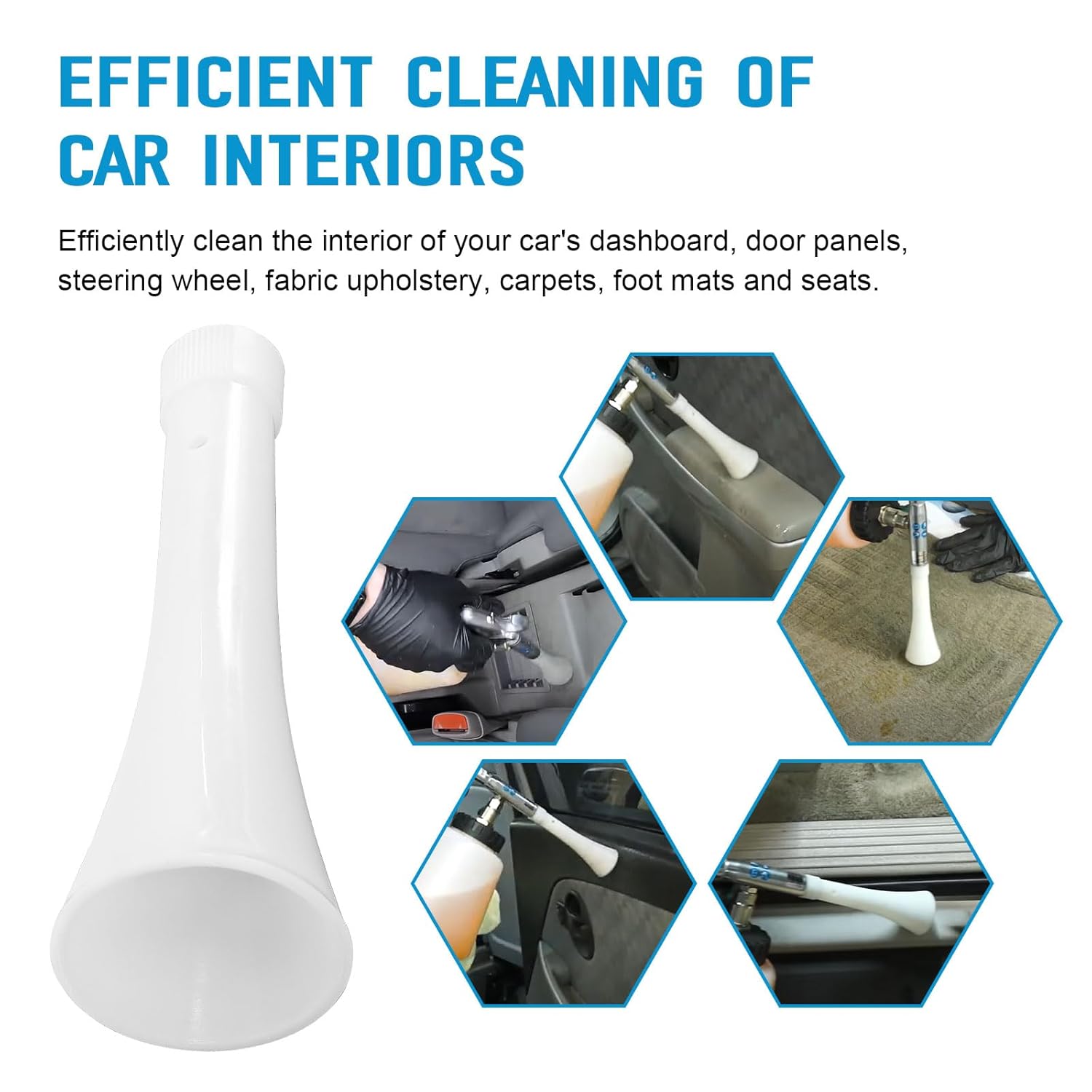 Com a ajuda do cone de limpeza, você pode utilizar seu compressor de ar para realizar uma limpeza eficiente do interior do carro, incluindo painel, painéis das portas, volante, estofados de tecido, carpetes, tapetes e assentos. Além disso, o cone é eficaz na limpeza externa do veículo, abrangendo rodas, tetos e costuras da carroceria. A manutenção regular com peças de reposição adequadas, como este cone, garante que sua pistola de limpeza mantenha um desempenho ideal, permitindo que você enfrente trabalhos de detalhamento mais desafiadores com facilidade.