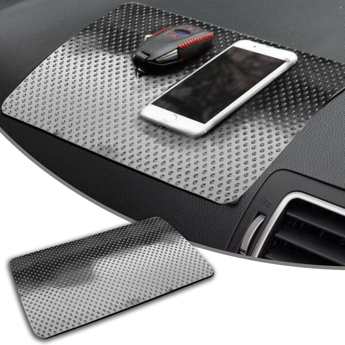 O Car Dashboard Anti-Slip Mat é a solução perfeita para quem busca praticidade e estilo no interior do veículo. Fabricado com materiais premium, como PVC e silicone, este tapete antiderrapante é não apenas ecológico, mas também projetado para resistir a altas e baixas temperaturas, além de ser à prova d’água. Com um design de padrão de grade requintado, ele proporciona uma sensação suave ao toque e uma estética moderna que transforma o interior do seu carro, tornando-o mais elegante e atraente.