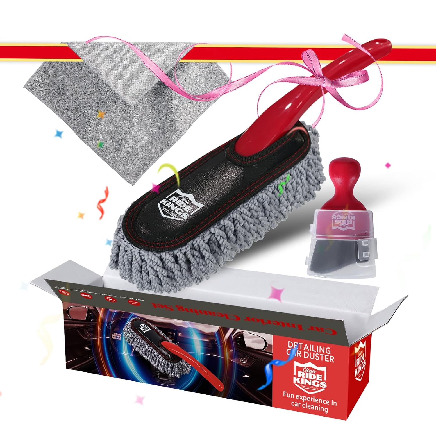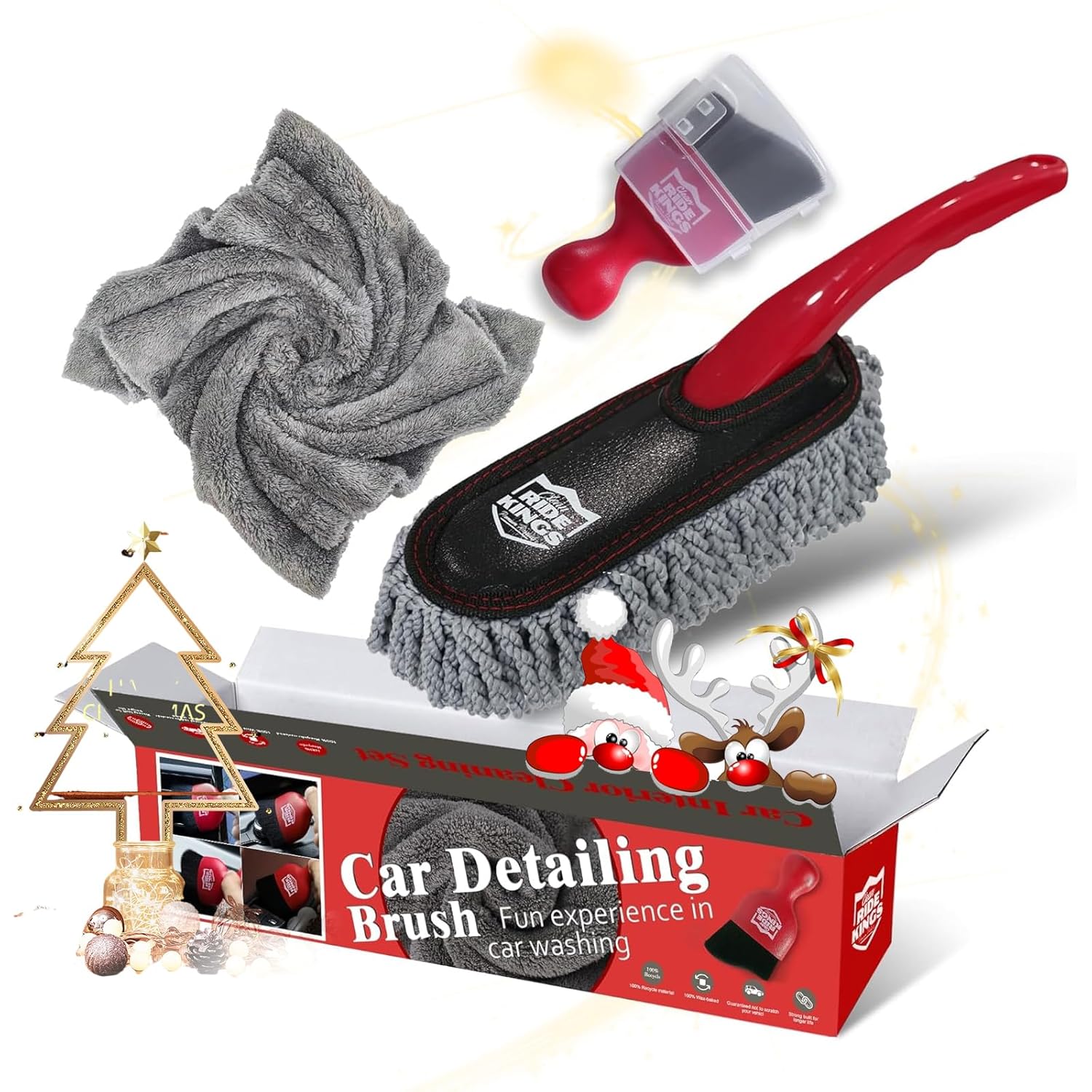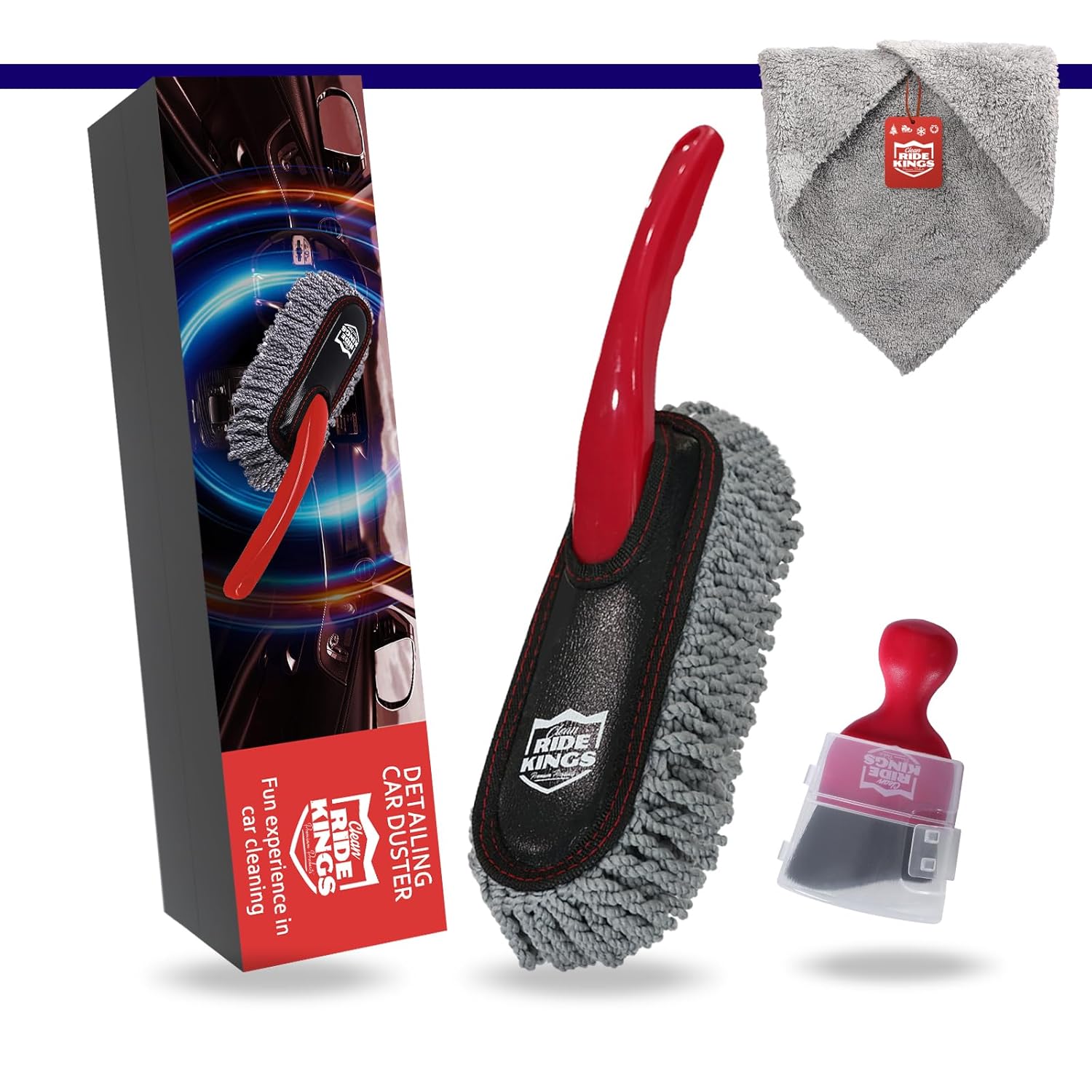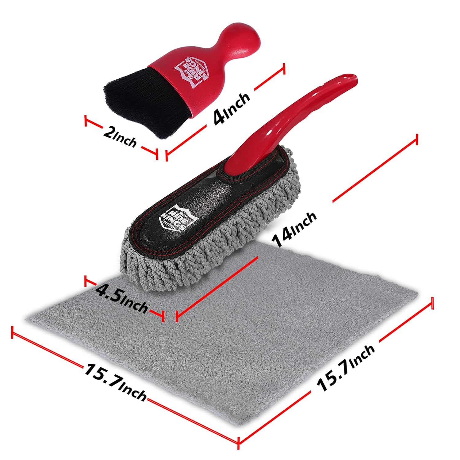 – Conjunto de 3 Peças: Inclui uma mini escova duster, uma escova de detalhamento e uma toalha de microfibra.