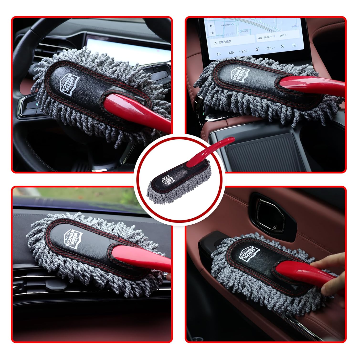 2. Uso do Duster: Utilize a mini escova duster para remover a poeira das superfícies. Passe a escova suavemente sobre o painel, bancos e outras áreas, permitindo que a eletricidade estática atraia a sujeira.