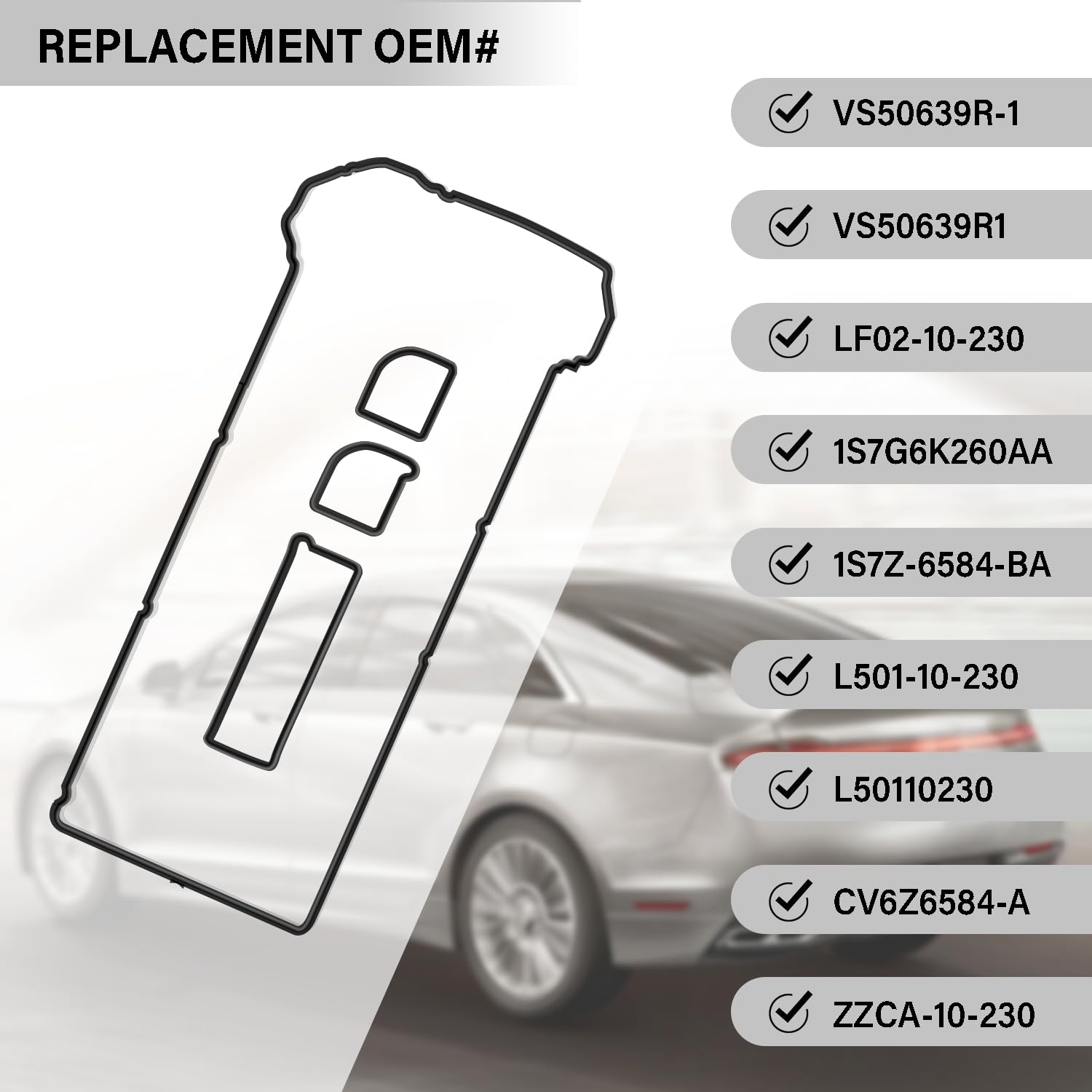 Este conjunto de juntas é uma réplica 1:1 da peça original, sendo um substituto perfeito para os números OEM: VS50639R-1, VS50639R1, LF02-10-230, 1S7G6K260AA, 1S7Z-6584-BA, L501-10-230, L50110230, CV6Z6584-A, ZZCA-10-230. É fundamental verificar se o número OEM e o tamanho atendem às suas necessidades antes da compra, para evitar problemas de compatibilidade.