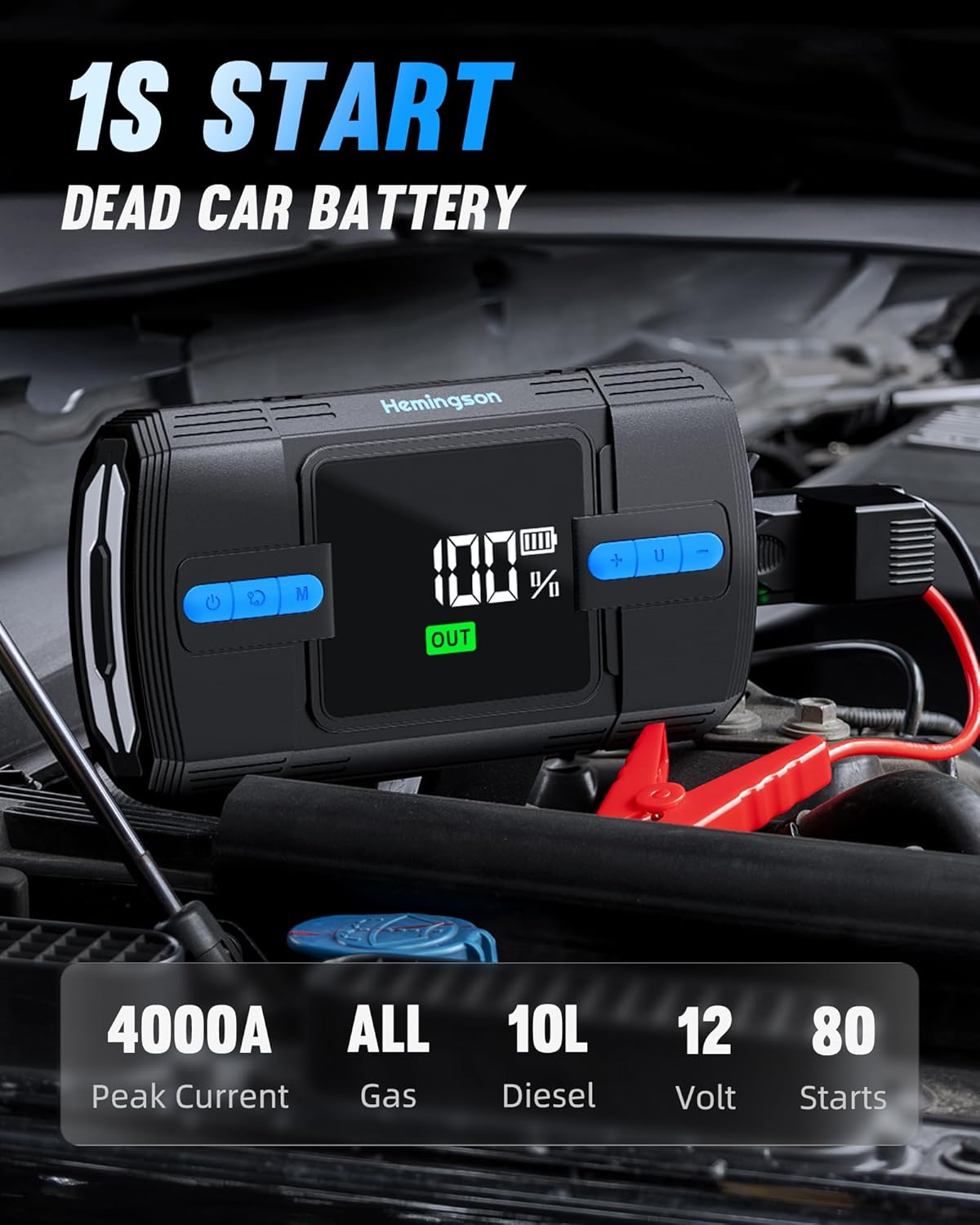 This car jump starter with an air compressor is an absolute game-changer! With 4000A of power, it effortlessly jump-starts my vehicle, even on those frosty mornings. I recently used it to jump-start my truck, and it worked flawlessly without any hassle.