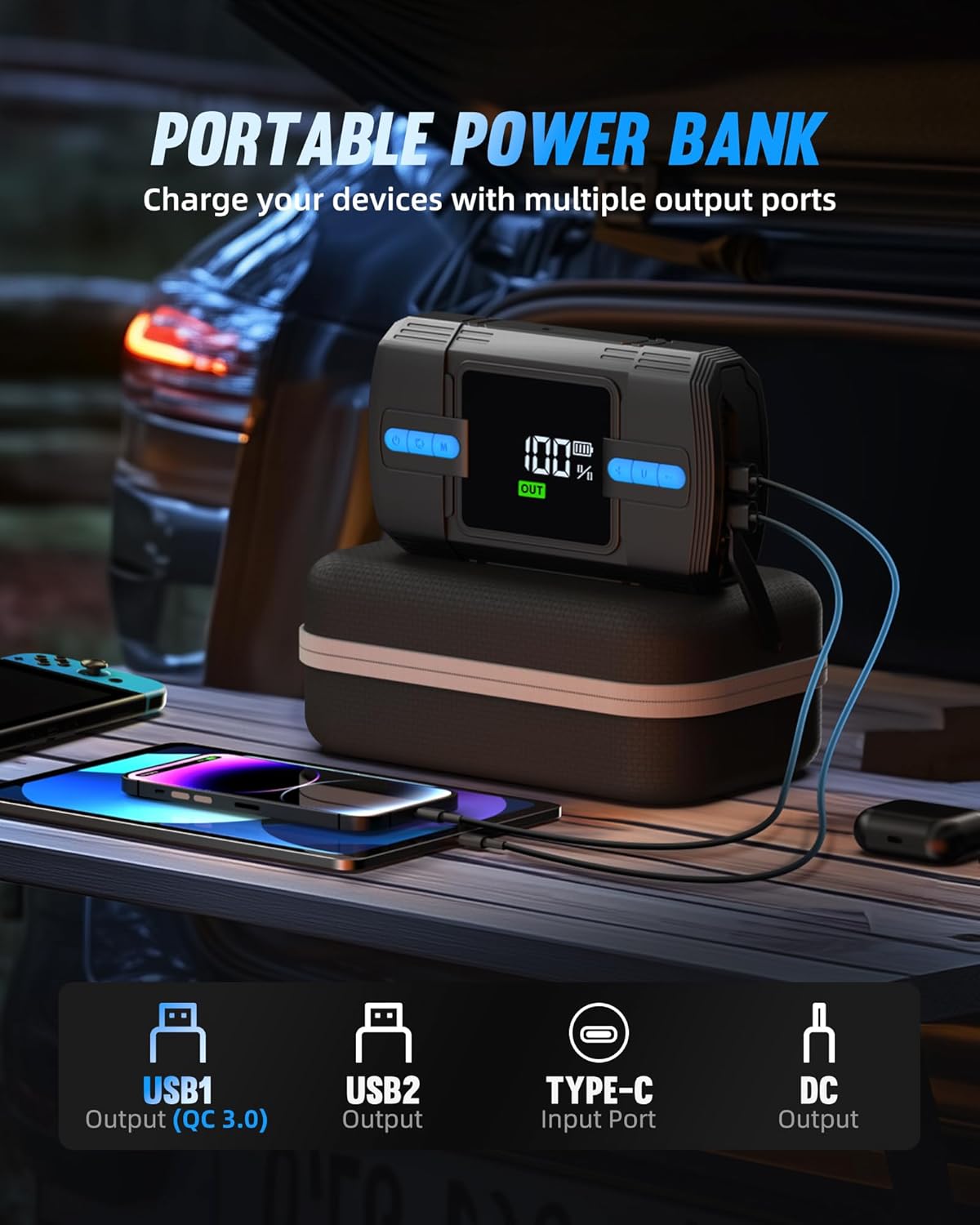 This jump starter and air compressor combo is an absolute game-changer! Highly recommend it for anyone who wants peace of mind on the road. Total must-have!