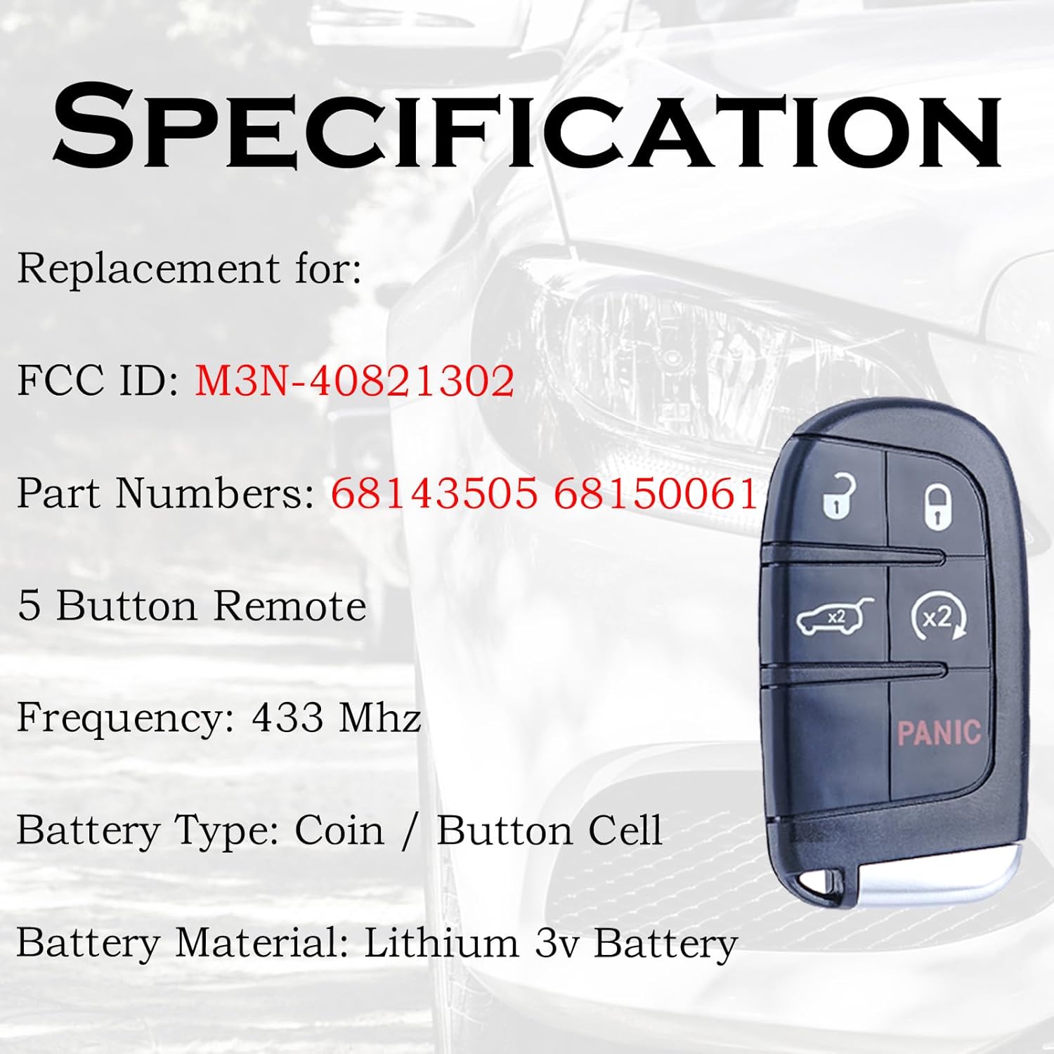 - COMPATIBILIDADE: Compatível com o FCC ID M3N-40821302. Verifique nossa descrição do produto e a ferramenta de compatibilidade de veículos para uma lista completa de veículos compatíveis. Este controle remoto de substituição é compatível com Jeep Grand Cherokee e Dodge Durango dos anos 2014 a 2022.