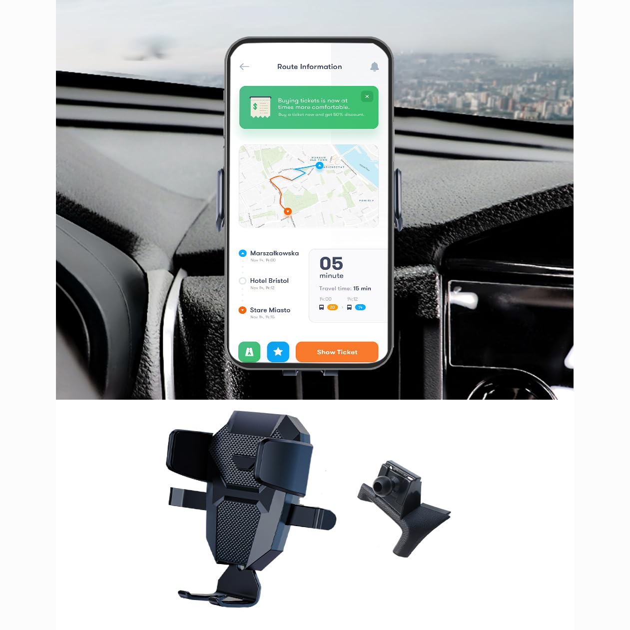 – Braços de Clampeamento Ajustáveis: Com um simples toque, os braços de clampeamento se ajustam para manter seu celular seguro. O suporte é compatível com smartphones de 4 a 7 polegadas, incluindo capas mais grossas, garantindo que seu dispositivo permaneça firme durante a condução.