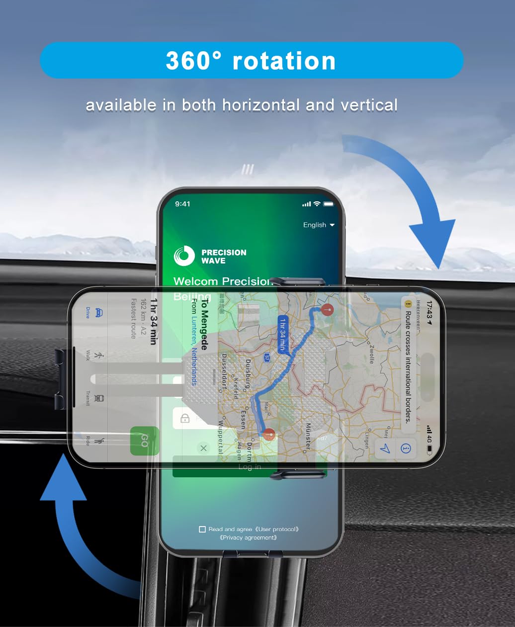 – Ajuste de Ângulo Fácil: O cabeçote rotativo de 360 graus permite que você ajuste o ângulo de visão do seu celular, seja na posição horizontal ou vertical. Isso garante que você tenha sempre a melhor visualização, mantendo a segurança enquanto dirige.