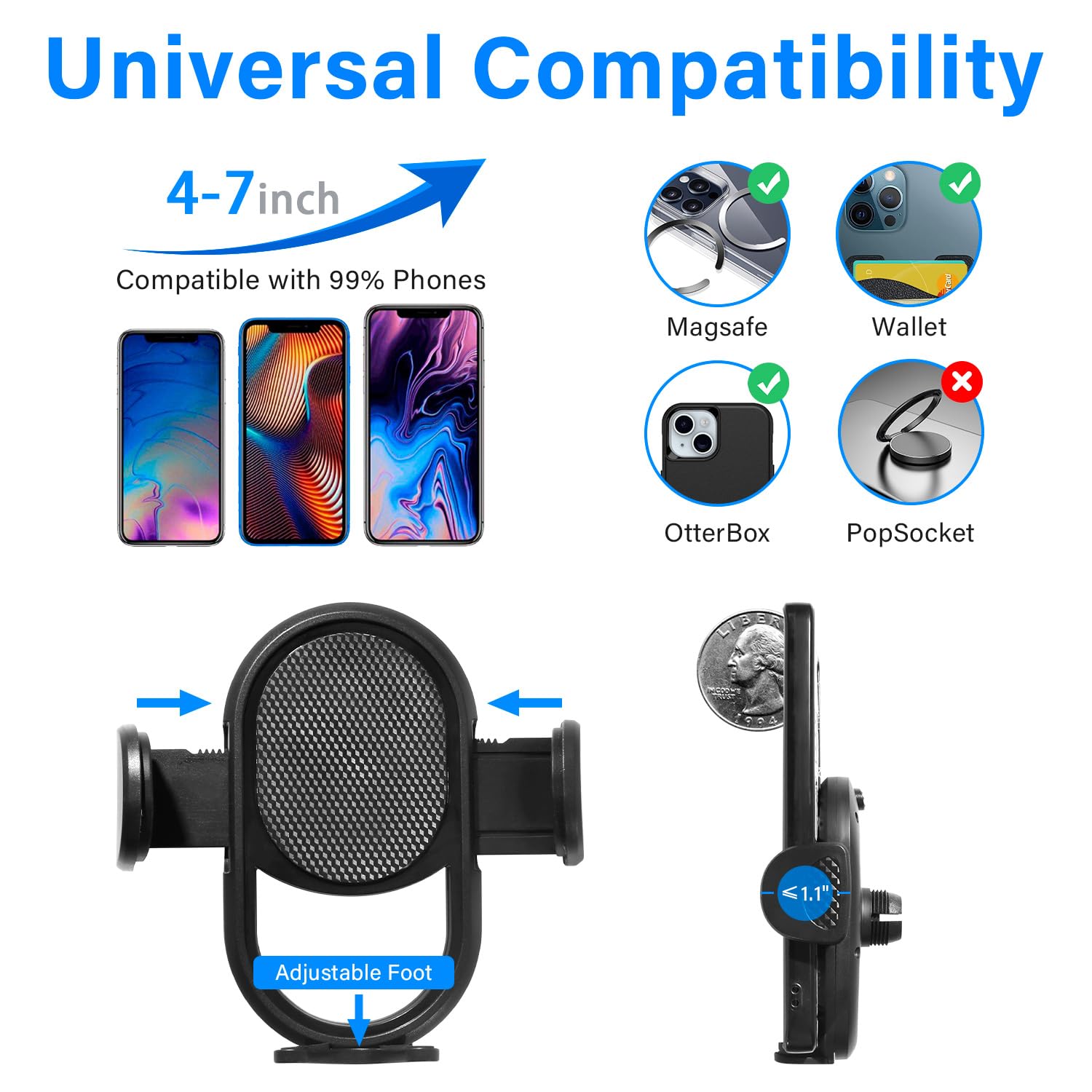 – Tamanho do Celular: Suporta smartphones de 4 a 7 polegadas, largura máxima de 9 cm.