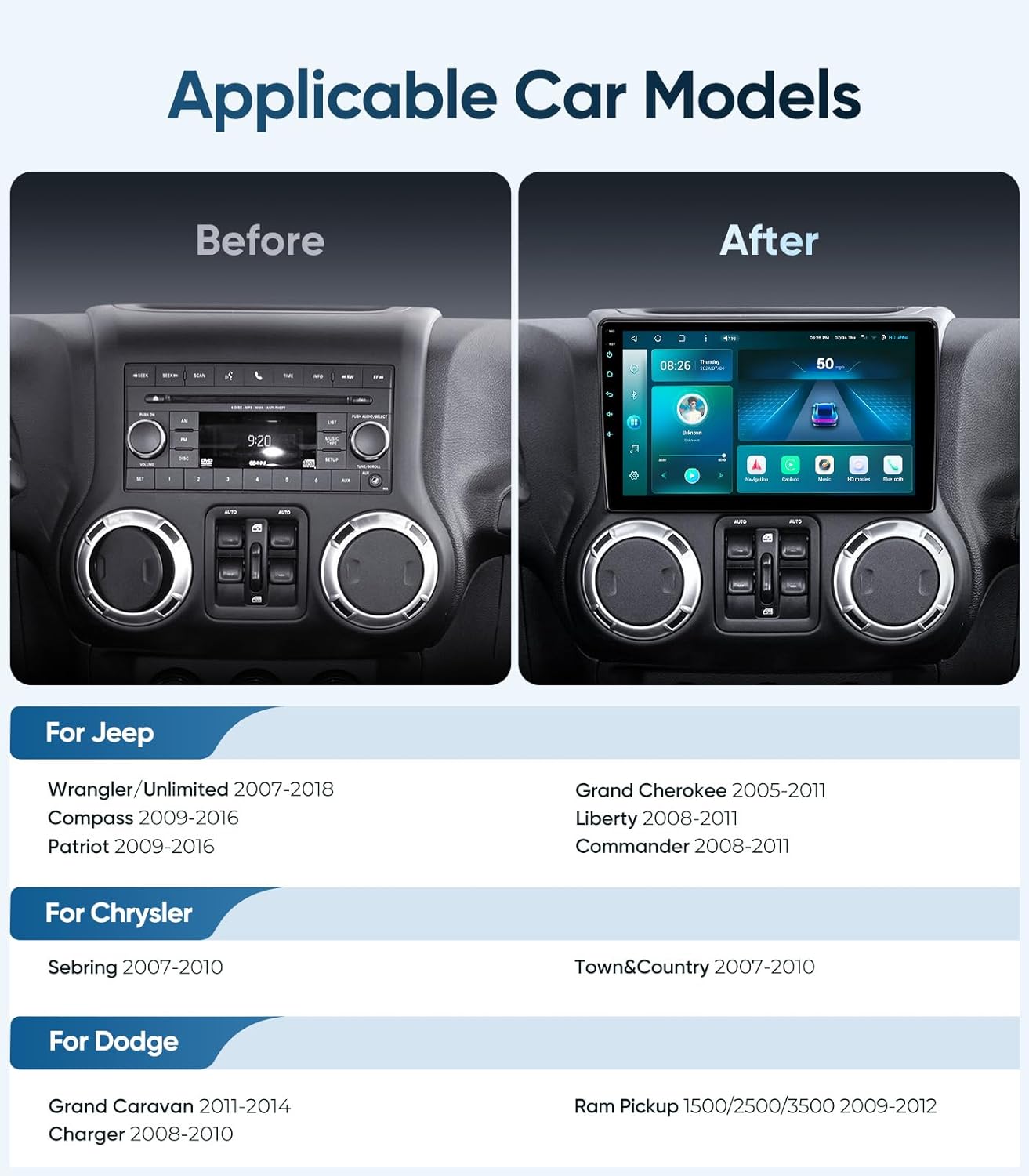 This stereo upgrade provides all the modern amenities you expect from a car infotainment system, such as wireless smartphone integration, advanced GPS navigation, and customizable audio settings. Its combination of ease of installation, powerful performance, and a sleek design makes it a great addition for Jeep and Dodge owners looking to enhance their in-car experience. 🙂