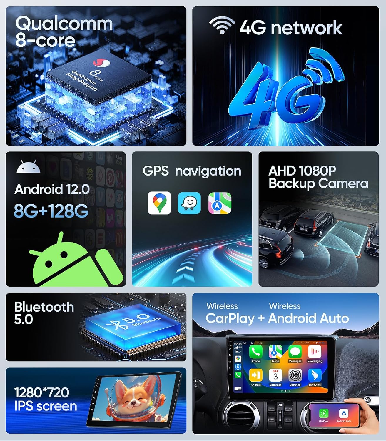 – **GPS Navigation & 5G Wi-Fi**: The stereo comes with built-in GPS and 5G Wi-Fi capability, supporting both offline and online maps like Google Maps or Waze. This ensures you stay on course no matter where you are.