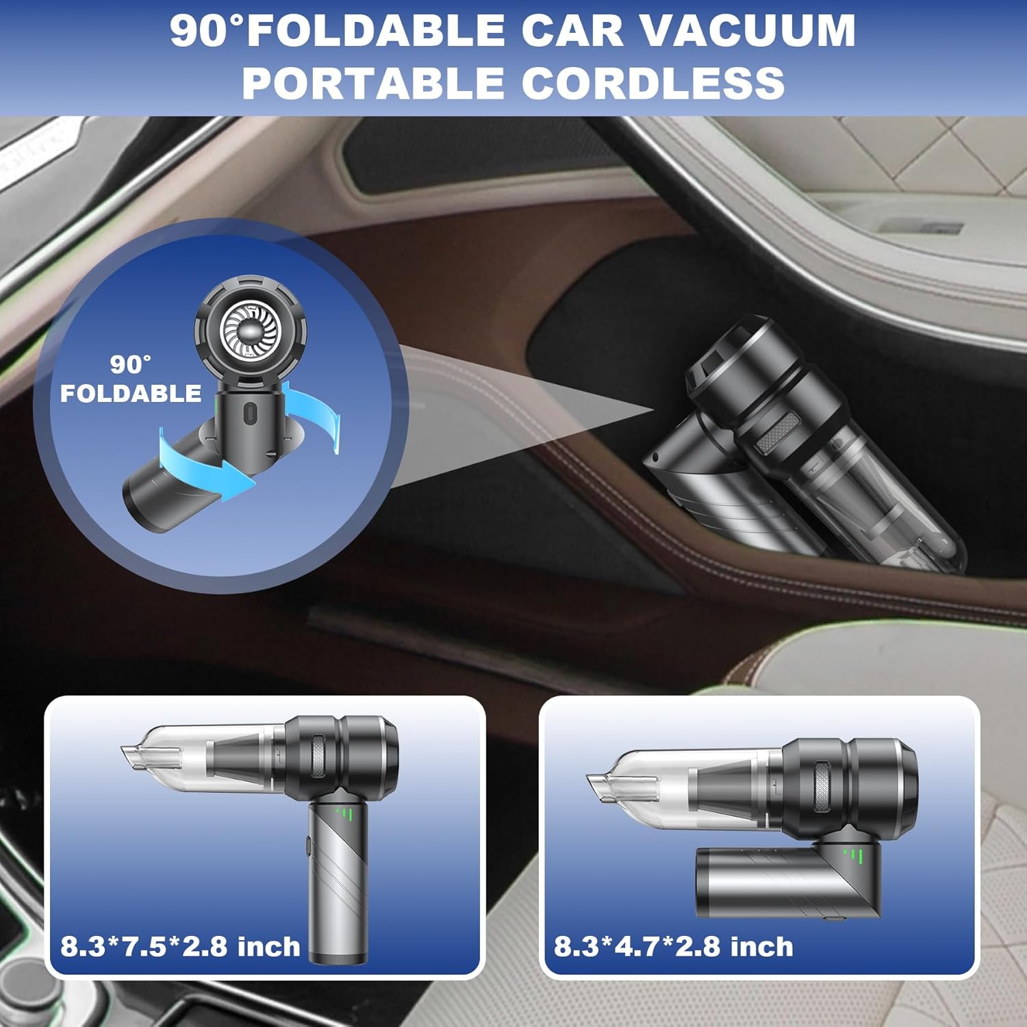 Apresentamos o Aspirador de Carro Portátil Sem Fio com Sucção de 18000Pa e Função 4 em 1. Este aspirador inovador combina potência e versatilidade, tornando-se a solução ideal para quem busca um equipamento prático e eficiente para limpeza de veículos e ambientes. Com um design multifuncional, ele não apenas aspira sujeira e detritos, mas também atua como soprador, inflador e compressor, atendendo a diversas necessidades de limpeza e organização.