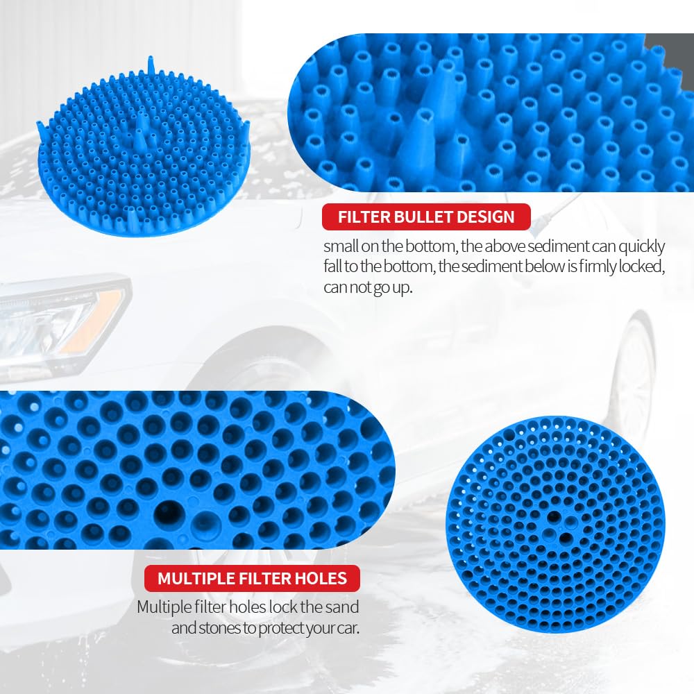 O design ergonômico do Car Wash Bucket Dirt Trap é outro destaque. Com um filtro que é pequeno na parte inferior e grande na parte superior, ele permite que os sedimentos se depositem rapidamente no fundo, enquanto mantém a sujeira firmemente presa. O centro possui um orifício redondo de quatro dedos, facilitando o manuseio, e a base conta com texturas e pequenos furos que ajudam a capturar a sujeira através de um funil ciclônico.
