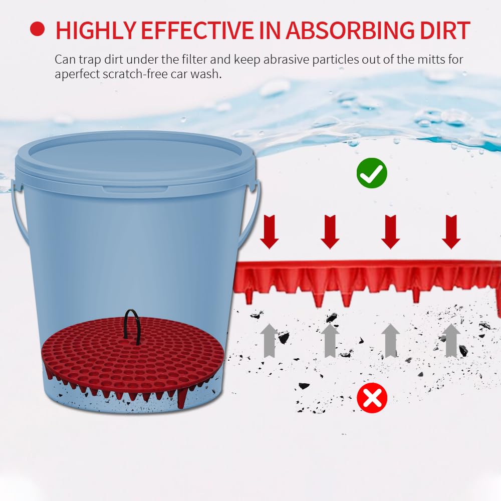 A principal função do Car Wash Bucket Dirt Trap é coletar eficientemente a sujeira e a areia que se acumulam no fundo do balde durante a lavagem. Seu design exclusivo em forma de mesa redonda evita que luvas, esponjas ou escovas de lavagem sejam danificadas, permitindo uma limpeza suave e eficaz. A instalação é simples: basta colocar o Dirt Trap no balde, encher com água e iniciar a lavagem do carro. Após o uso, a limpeza é rápida, bastando enxaguar com água, sem deixar manchas, o que facilita o armazenamento.