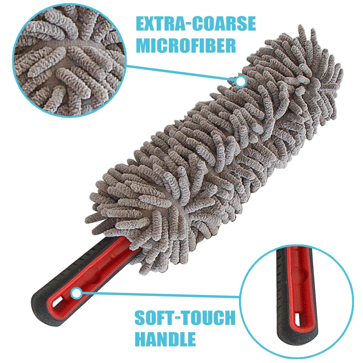 Fabricada com material de chenille de alta qualidade, a escova é macia, durável e fácil de limpar. A microfibra eletrostática garante que, independentemente do local, a poeira não será deixada para trás. Seu design especial permite a remoção de sujeira e poeira do corpo do carro sem arranhar a pintura, proporcionando uma limpeza segura e eficaz.