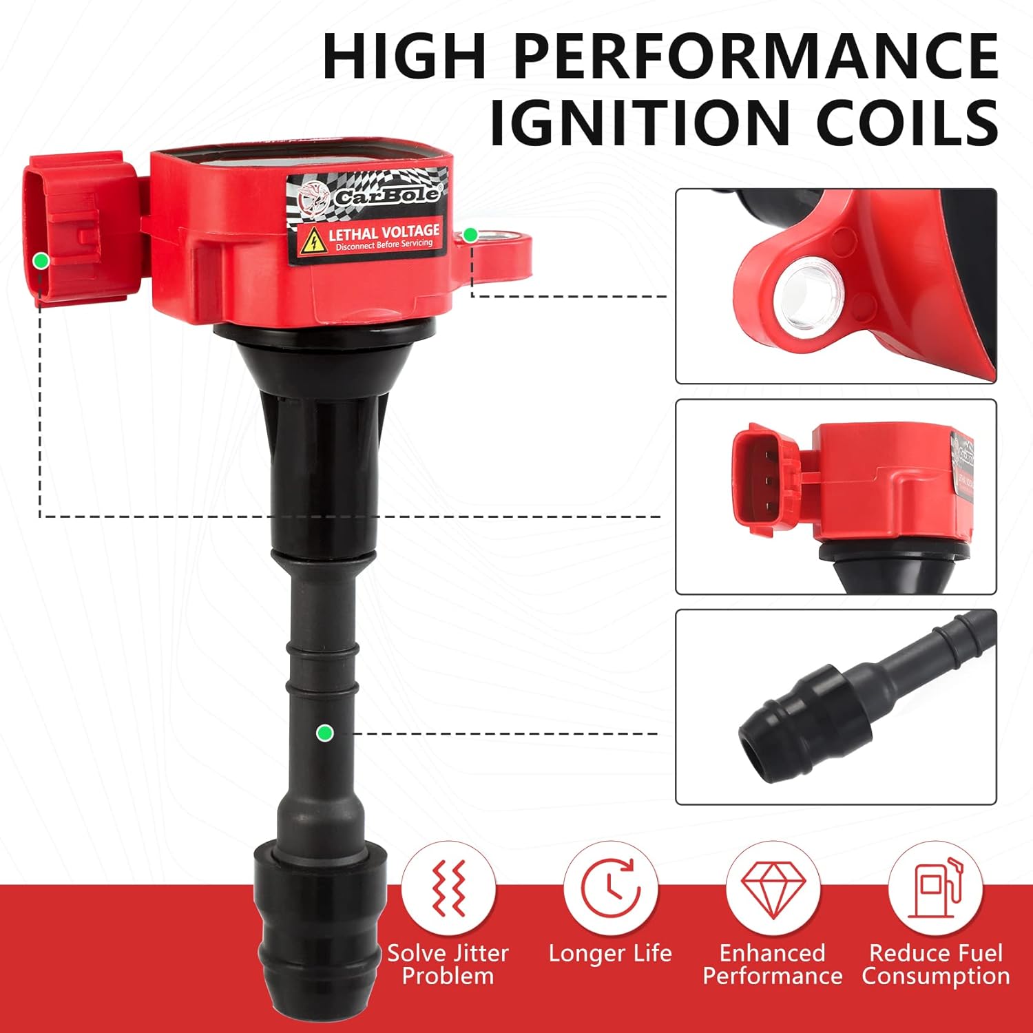 As bobinas de ignição são peças fundamentais para o funcionamento eficiente do motor, e a substituição deve ser feita de forma sincronizada com as velas de ignição para resolver problemas de funcionamento, como falhas de ignição, aceleração deficiente, tremores excessivos ou perda de potência. O uso de materiais resistentes a altas temperaturas garante uma excelente resistência ao calor, saída de tensão, resistência a choques e um pulso de ignição rápido, comparável aos produtos OEM.
