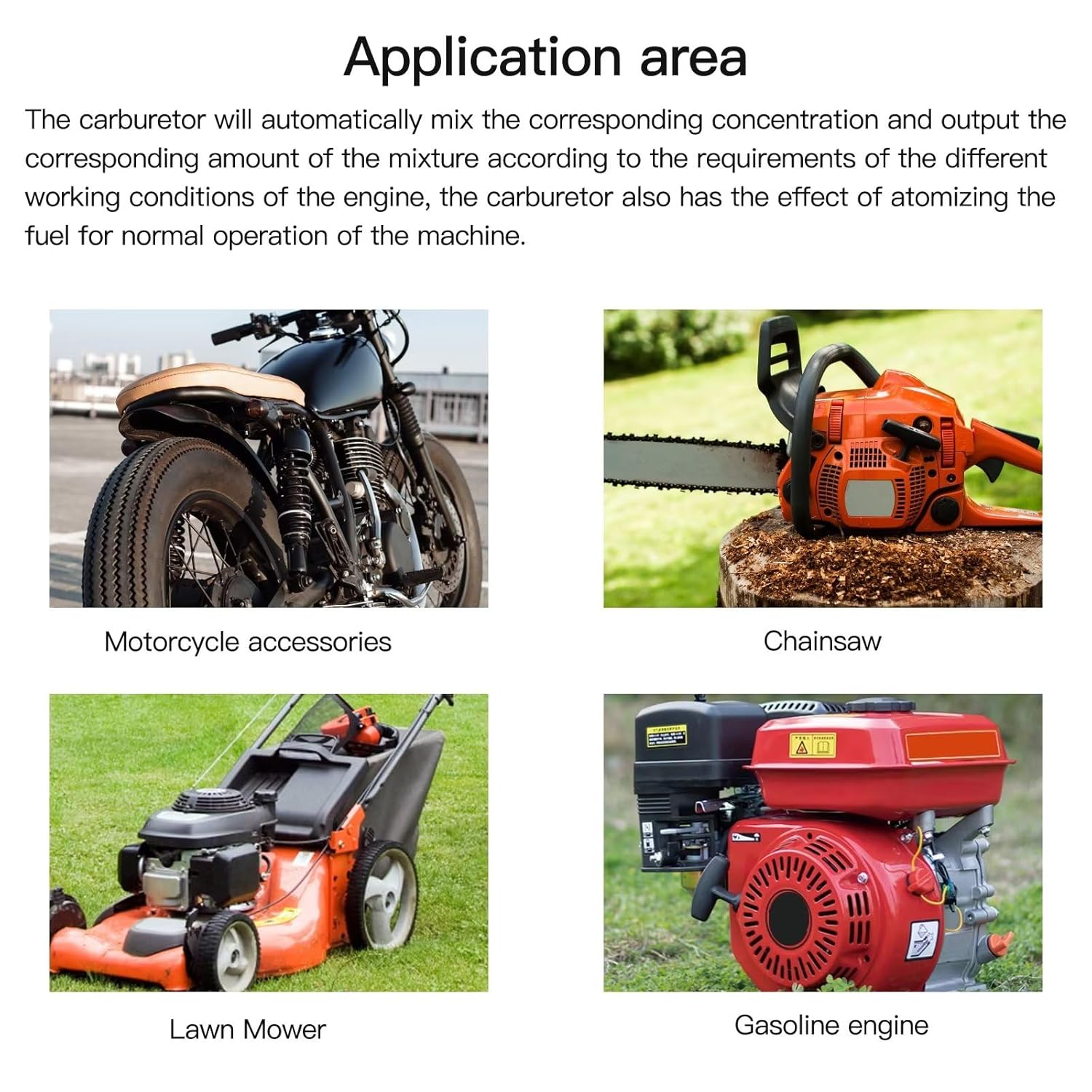Além de sua compatibilidade, o carburador vem acompanhado de um kit de ferramentas que inclui uma junta gratuita e um limpador de jatos de carbono, facilitando ainda mais a manutenção do seu motor. Os componentes deste carburador são de alta qualidade, assegurando que ele funcione como um substituto direto do carburador original, sem a necessidade de ajustes adicionais. Todos os produtos são rigorosamente testados antes do envio, eliminando preocupações com a instalação e o funcionamento.