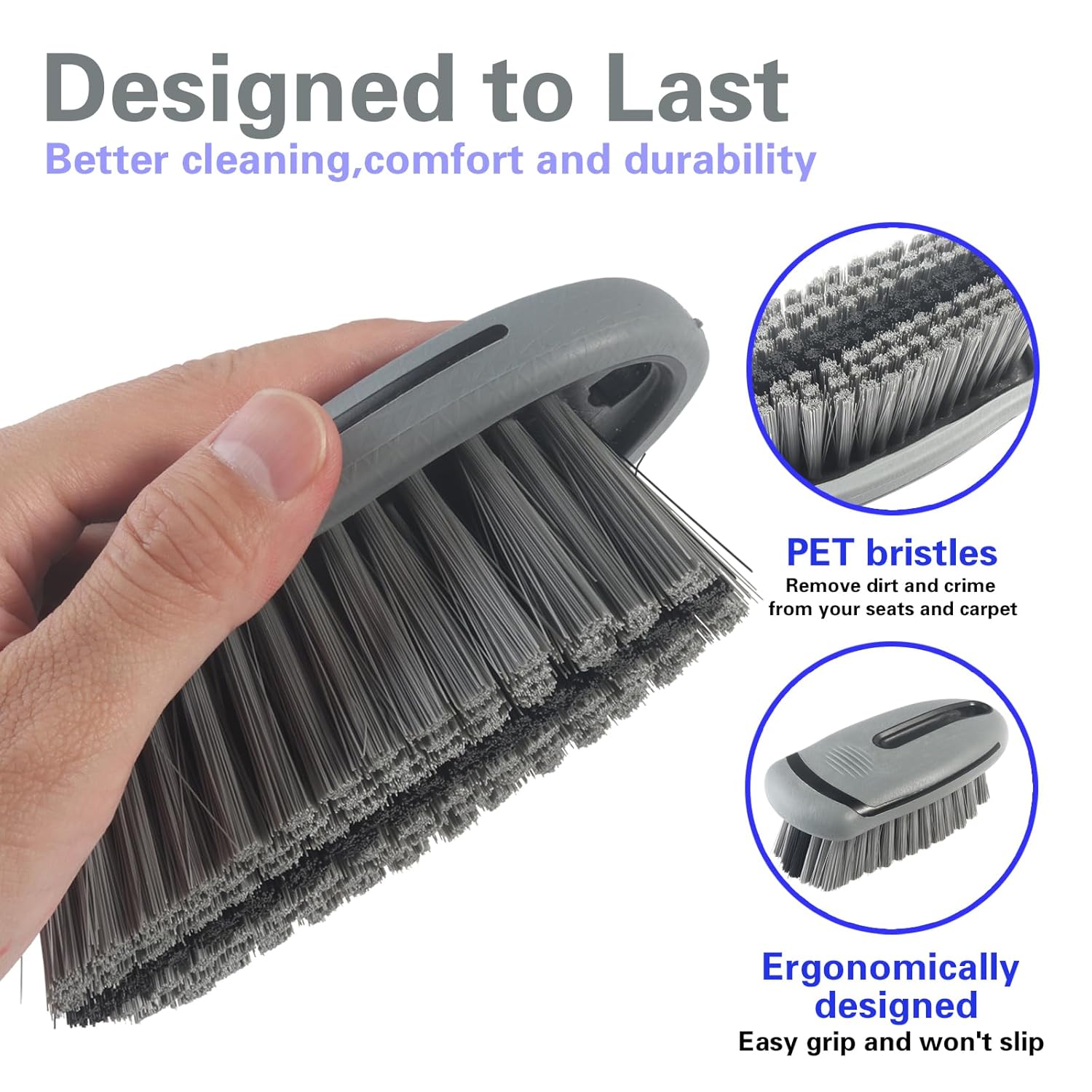 Escova de Limpeza para Carpete e Estofados - Escova Dura para Detalhamento, Escova de Couro para Carro e Casa (Cinza)