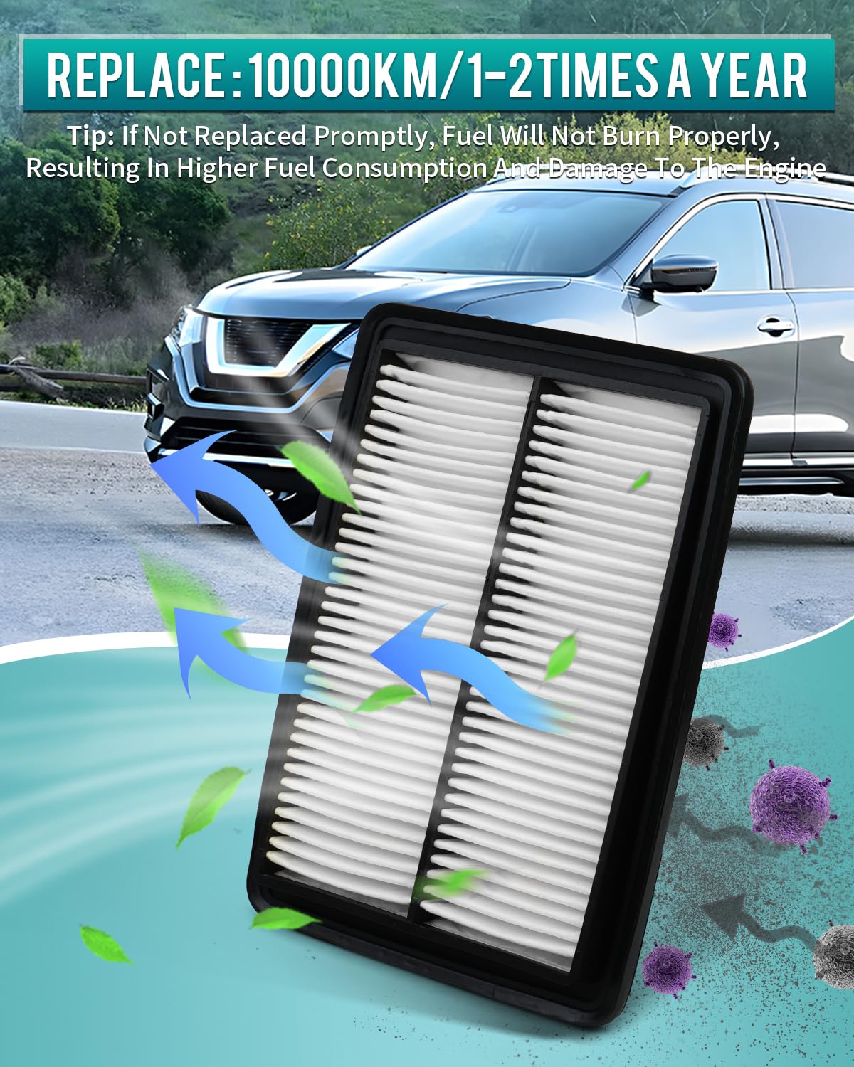 - 【Compatível Com】: Este filtro de ar do motor é compatível com o Nissan Rogue Sport 2017-2022 (2.0L), Nissan Rogue 2017-2019 (2.0L), Nissan Qashqai 2017-2022 (2.0L) e Nissan Rogue 2014-2020 (2.5L).