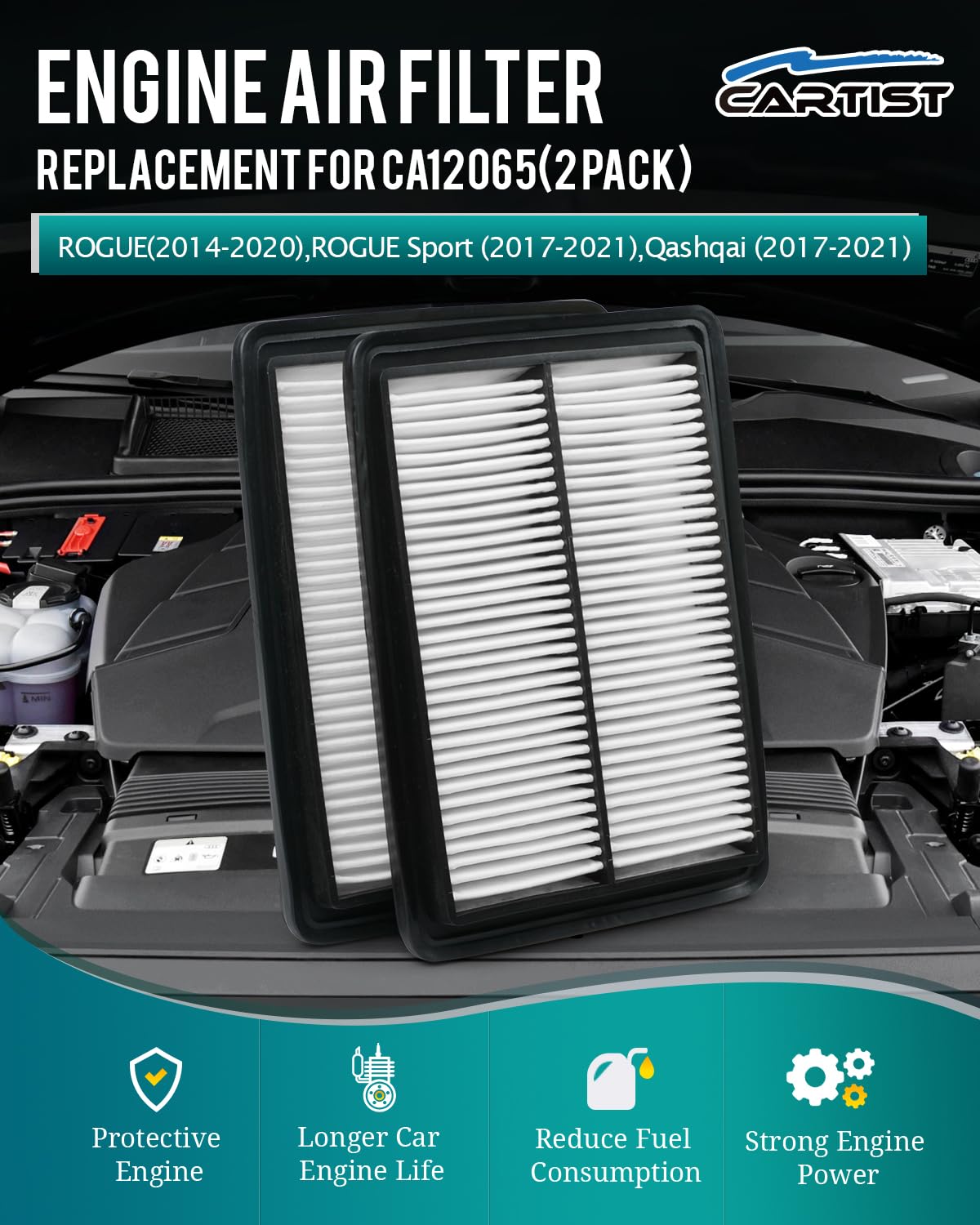 O Filtro de Ar do Motor Cartist 2-Pack é a solução perfeita para proprietários de veículos Nissan que desejam garantir a máxima eficiência e desempenho do motor. Este filtro é compatível com uma variedade de modelos, incluindo o Nissan Rogue (2014-2020), Rogue Sport (2017-2022) e Qashqai (2017-2022). Projetado com precisão para atender às exigências específicas de cada modelo, o Cartist oferece uma filtragem superior, contribuindo para um desempenho otimizado e uma condução mais suave.